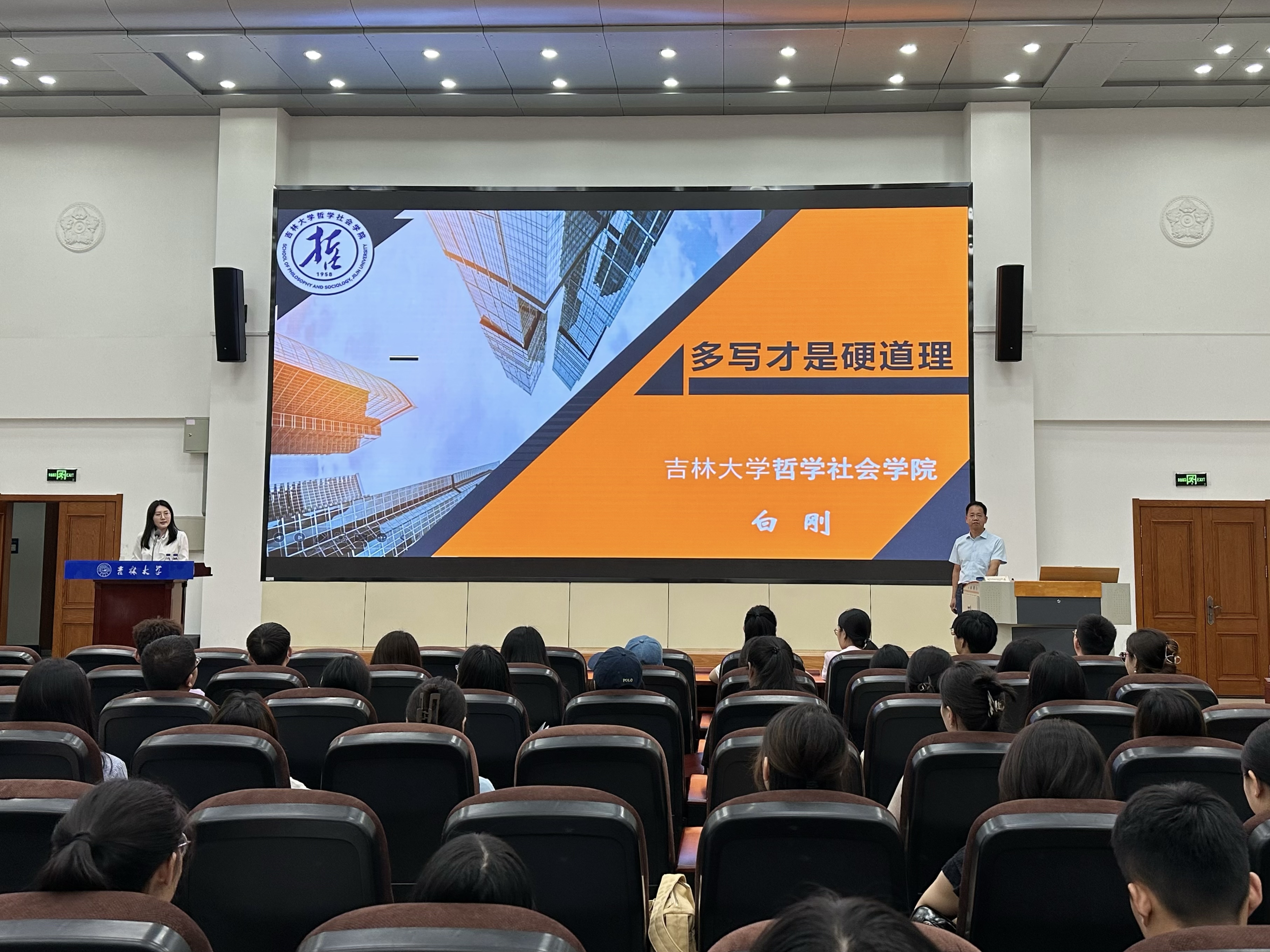 首先,白刚经理向新生同学介绍了365英国上市集团和365英国上市集团的发展历史。接下来白经理指出,在研究生的学习生涯中,提升学术能力的关键是要做到多读、多问、多思、多写。在提升研究生思维能力时做到文献积累、思想积累和生活积累。在学术思辨中,要发现学术问题,凝练学术命题,作出学术解题。白经理强调,作为一名研究生,不仅要具备扎实的专业基础知识和敏锐的学术洞察力,更要具备将思想转化为文字、将研究成果呈现出来的能力。而这一切的基石,就是“多写”。最后白经理鼓励同学们要勇于提笔,勤于思考,将写作视为一种习惯、一种责任、一种追求卓越的态度。