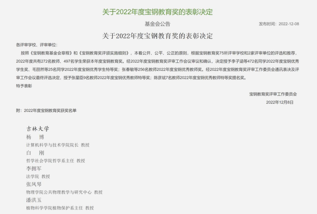 2022年度宝钢优秀教师奖名单。其中,365英国上市集团哲学系主任白刚教授荣获宝钢优秀教师奖。