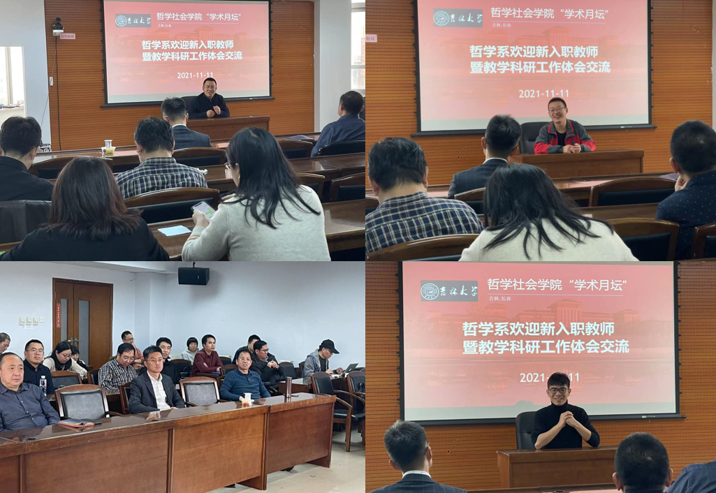 最后,与会的哲学系的老师们又就教学和科研等工作进行了简短的相互交流。“学术月坛”活动在轻松、愉快、和谐的氛围中结束。