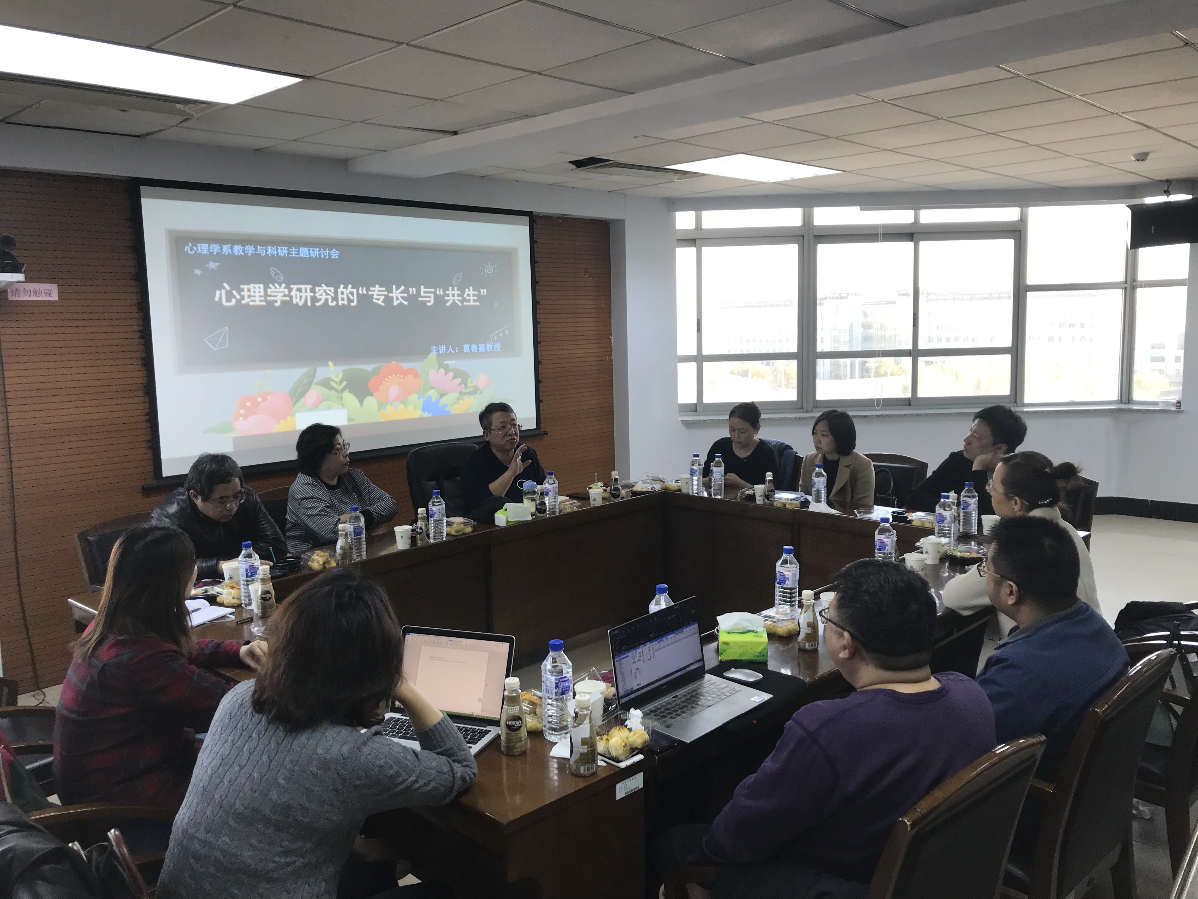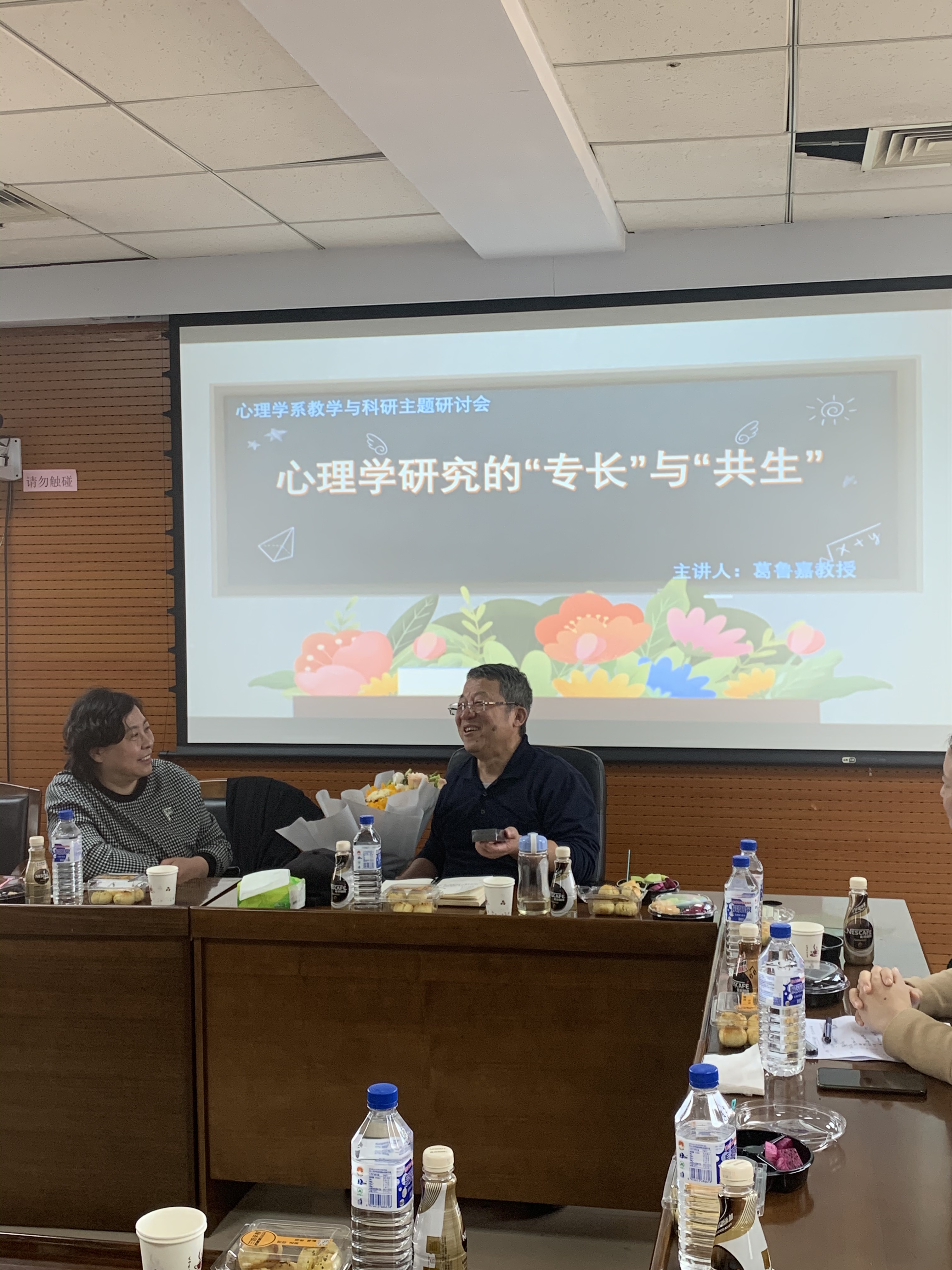 2021年10月27日上午,公司心理学系在东荣904举办了“教学与科研”学术交流研讨会。本次研讨会以“心理学研究的专长与共生”为主题,心理系全体教师出席了本次座谈。研讨会由葛鲁嘉教授主讲,他首先以心理学研究的专长为切入点,从专业的广度、深度、纯度、跨度、热度和长度几个方面考察了心理学研究的专长,并指出心理学研究应当以学术研究和学术创造为中心,以研究规划和时间安排为依据,以打牢基础和开拓创造为要求,以深化探索和善于开拓为特征,以发表成果和学术影响为量尺。之后,葛鲁嘉教授又从“共生”的视角出发,指出心理学研究的“共生”是生态学理论框架下的共生,其内容包括共生、生态、多元;开放、共享、同仁;互联、互通、互补,以及和谐、统一、双赢等多个方面。