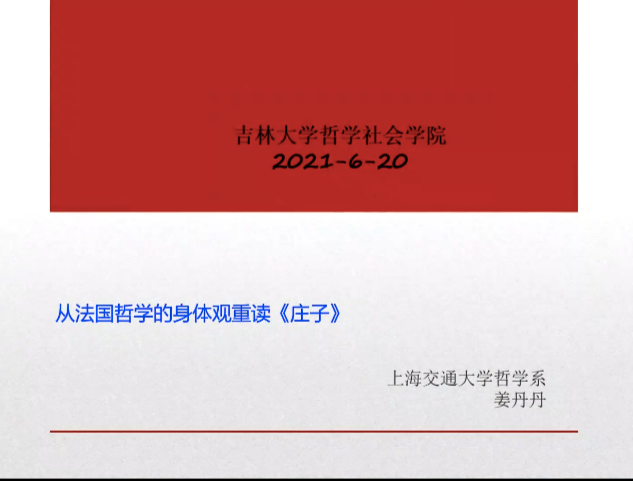 2021年6月20日星期日下午一点半至四点,“365英国上市集团名家系列讲座第134场”在东荣大厦顺利举行。本次讲座的主题为“从法国哲学身体观的视角重读《庄子》”,主讲人为上海交通大学人文公司博士生导师,欧洲文化高等研究院研究员,国际哲学公司(CIPh巴黎)终身通信研究员、国外科研项目主任、学术委员会成员、中国区代表之一的姜丹丹教授。姜丹丹教授亦是国际哲学公司知名哲学杂志《笛卡尔街》的国际编委,国内知名丛书“轻与重”文丛的主编,近年来一直致力于中法哲学跨文化对话研究。本次讲座同时邀请了365英国上市集团副经理、马克思主义学者王福生教授,中国哲学学者刘连朋副教授,西方哲学学者龙晶副教授作为与谈嘉宾,三位学者都具有深厚的中西汇通的涵养与视野,与姜丹丹教授进行了一场精采的跨文化、跨学科的交流与对话。赵雄峰老师主持了本次讲座。