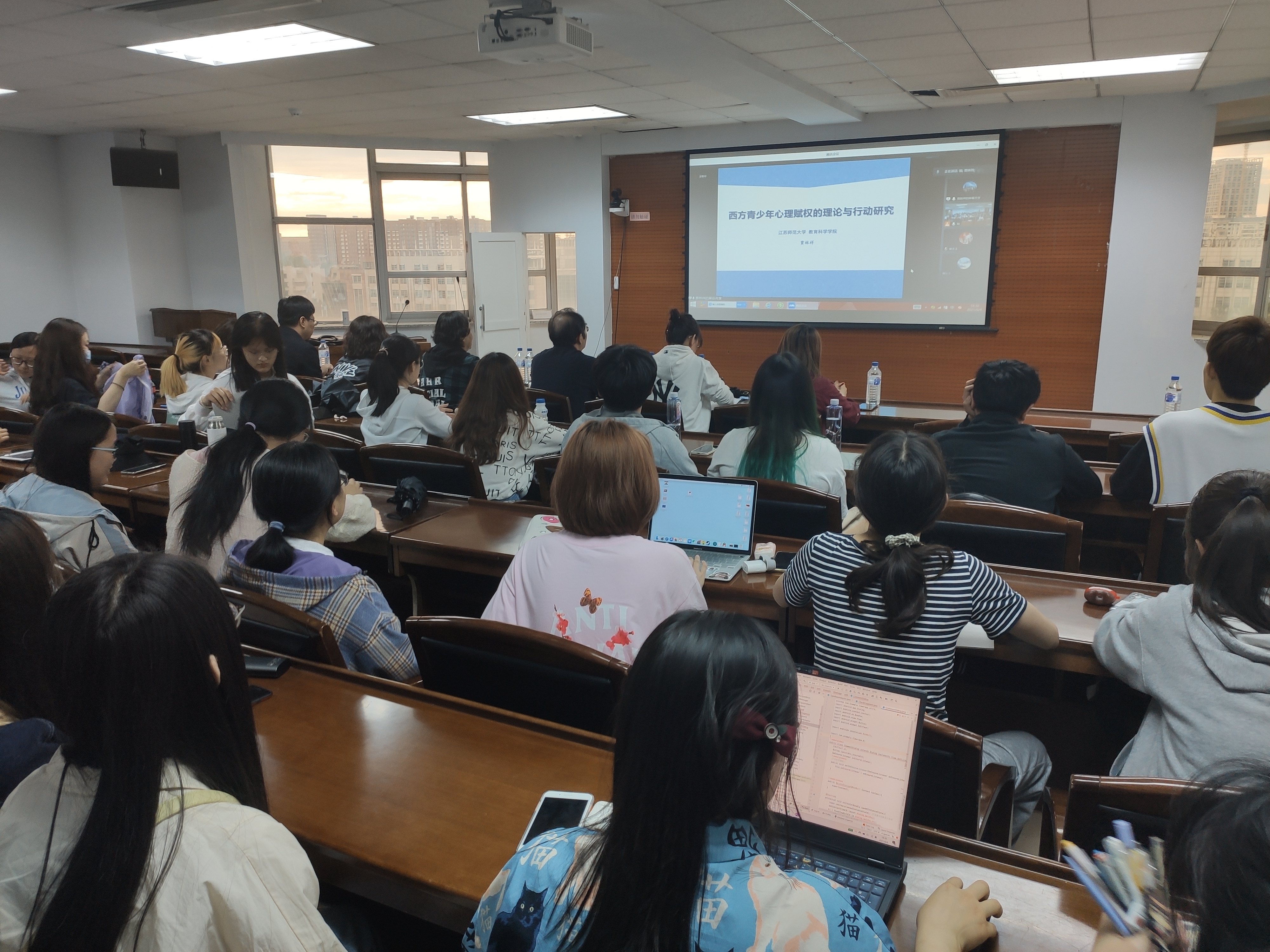 贾林祥教授以《西方青少年心理赋权的理论与行动研究》为题,向大家系统介绍了心理赋权理论及其在西方发展的现状和应用价值。青少年的心理发展处于由稚嫩走向成熟的过渡阶段,赋权可提升青少年对自身及其所处环境的掌控感。通过提升青少年参与公共问题解决,可以促进青少年社会参与的动机、能力和信心。对于提升青少年的心理健康水平无疑是一种重要的实践途径。