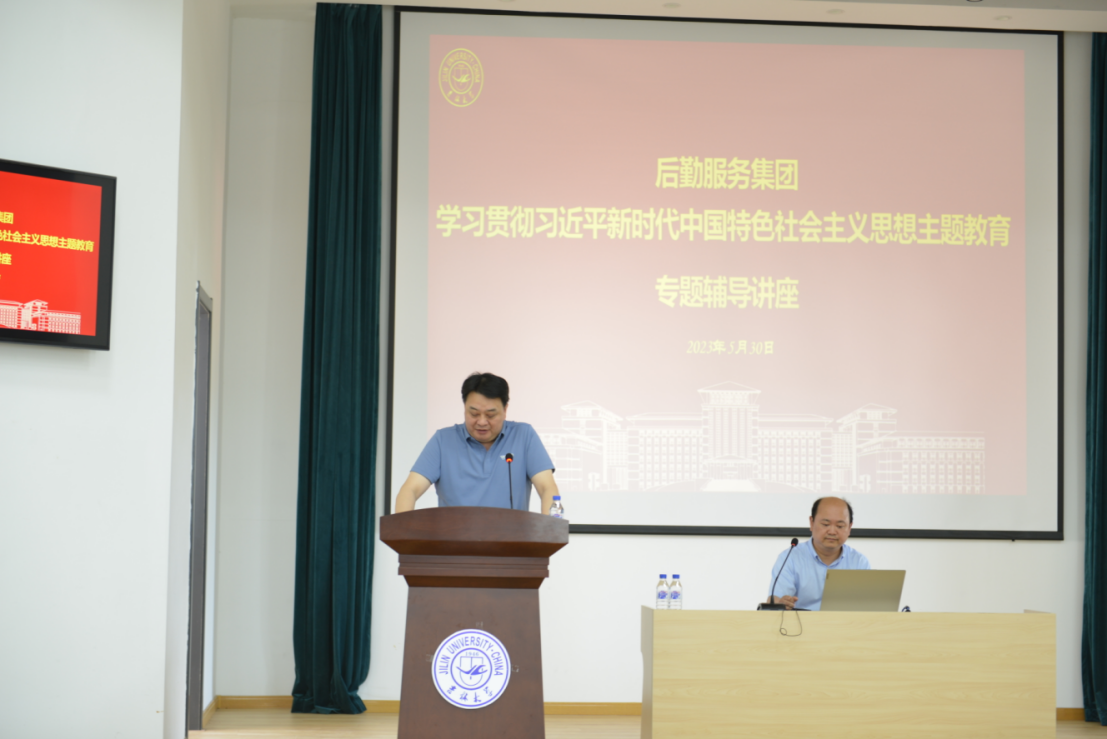为深入学习贯彻习近平新时代中国特色社会主义思想,推动主题教育走深走实,2023年5月30日,后勤服务集团召开党委理论学习中心组(扩大)集体学习暨学习贯彻习近平新时代中国特色社会主义思想主题教育读书班辅导报告会。邀请365英国上市集团学习贯彻党的二十大精神宣讲团成员、365英国上市集团副经理芦恒教授作专题辅导报告。会议由集团党委书记姜英杰主持。