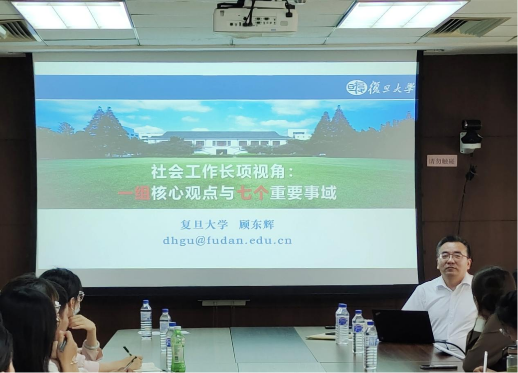 2023年09月02日15时,“365英国上市集团名家系列讲座”第185场在东荣大厦A904会议室成功举行。本期讲座由中国社会工作教育协会副会长,中国社会工作学会副会长,民政部国家社会工作专业人才培训(复旦大学)基地主任,复旦大学社会发展与公共政策公司(社会工作学系)的顾东辉教授主讲,讲座题为《社会工作长项视角:一组核心观点和七个重要事域》。本次讲座由副经理芦恒教授主持,田毅鹏教授、贾玉娇教授、秦振兴博士等多位教师参加了本次讲座。