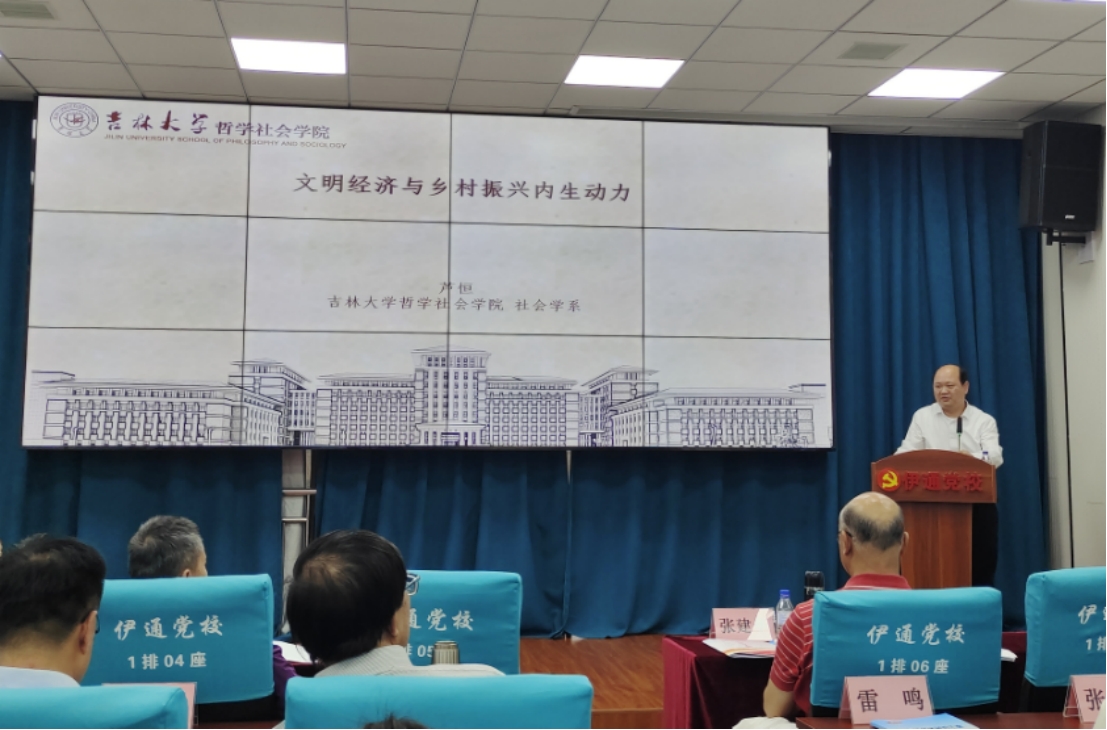 揭牌仪式后,芦恒教授在研讨会上做了题为“文明经济与乡村振兴内生动力”的主题发言。他认为文明经济可以追溯到明朝浙东事功学派陈亮、叶适等人倡导的“义利并举”思想,也可结合现代道德经济和道德资本等进行阐释。