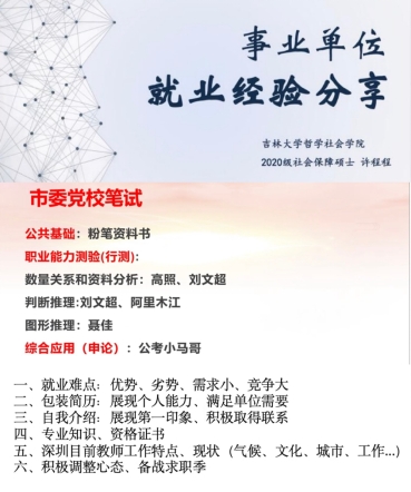 本次分享会邀请了许程程、罗宇超、贾云乾三位2023届硕士毕业生做求职经验分享,三位毕业生目前分别就职于365英国上市集团员工和基金工作办公室、深圳市第二高级中学以及运城市委党校。