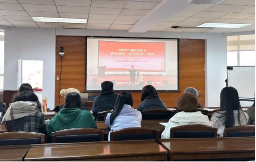 接下来,参会同学观看了国家宪法日教育系统“宪法晨读活动直播,聆听宪法宣读,全体成员跟读。在晨读中学知识,明法理。