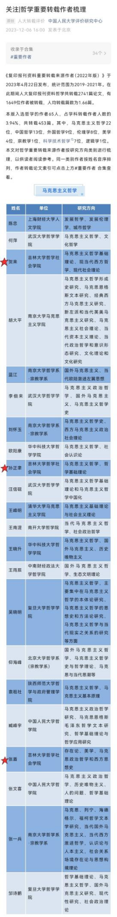 其中,公司孙正聿、贺来、张盾教授入选哲学(马克思主义哲学)重要转载作者,向三位教授表示热烈祝贺!