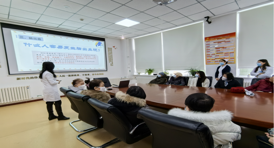 第二个环节是义诊活动。义诊人员分为血压测量组、技能评估组(医学量表测量)、医疗咨询和诊治组。公司的芦恒、李晓玲、祁静等教师以及研究生参与医疗咨询和诊治组,在临床医生问诊结束后,补充了解心理、人际交往、社会支持、社会参与等方面影响患者治疗的社会因素。
