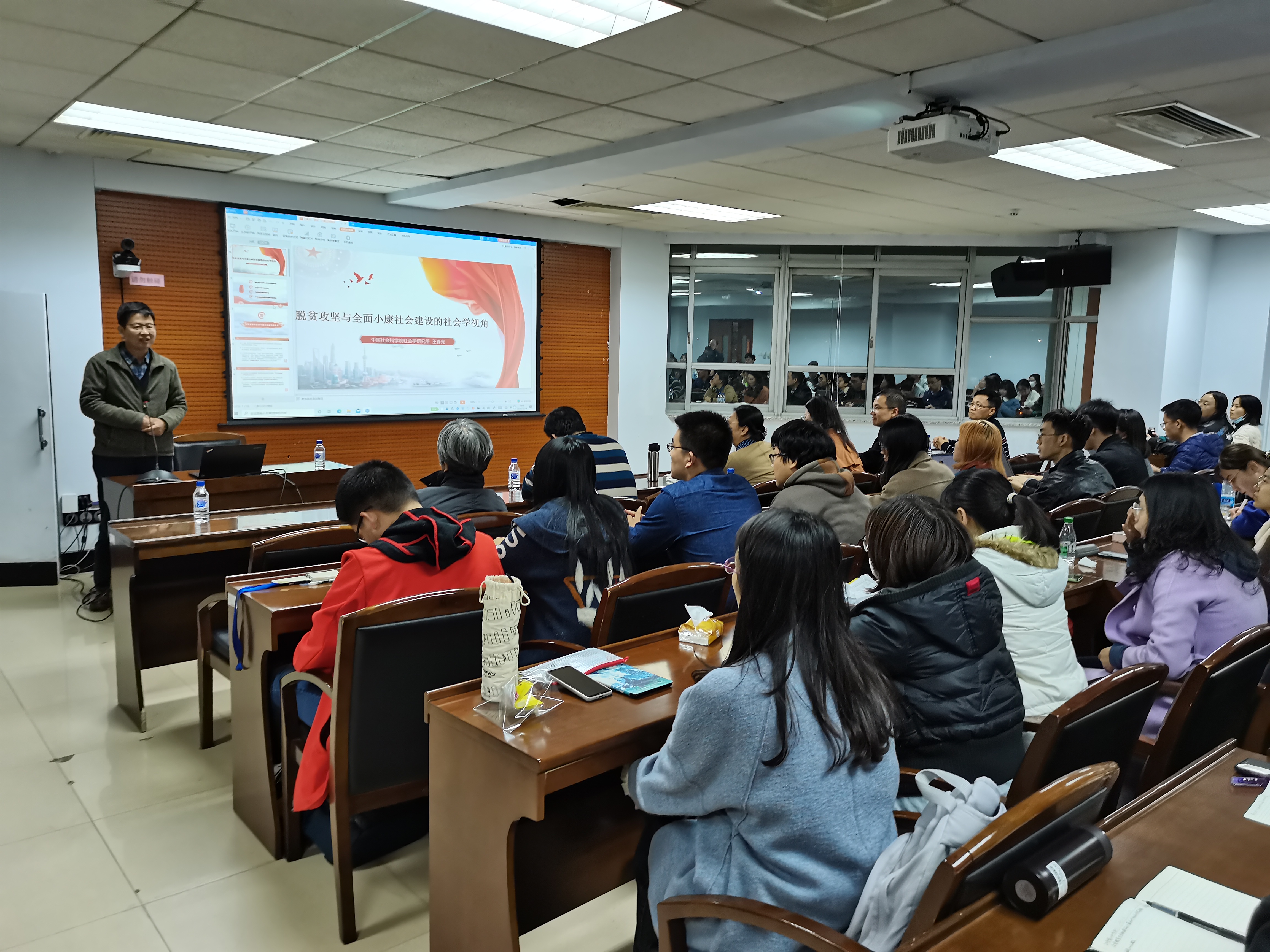 讲座伊始,王春光教授回忆了自身对贵州、浙江、苏州等地区的持续二十余年的跟踪调研经历,并引出本次讲座的主题,围绕着脱贫攻坚与全面小康社会建设的关系、过去四十年中国返贫进程、精准扶贫和脱贫实践,以及如何看待贫困和反贫困的可持续性四部分内容进行阐述。王教授首先谈及了中国小康社会与全面小康社会涵义的提出和演化历程,1978年改革开放之后,政府开始承认并关注贫困问题,从“小康”的提出到“全面小康社会”概念的完善,不仅体现国家在反贫困政策目标上由最低的生存保障反贫,向实现脱贫致富发生转变,“小康”概念的提出,更是激发国民生产创造动力的重要手段,具备价值引领意义。王春光教授指出,从十四大到十九大报告中可以看出,国家越来越强调小康社会,小康社会的内涵也越来越丰富,体现出国家经济建设向好发展背景下,社会建设、制度建设进程相对落后问题的反思。