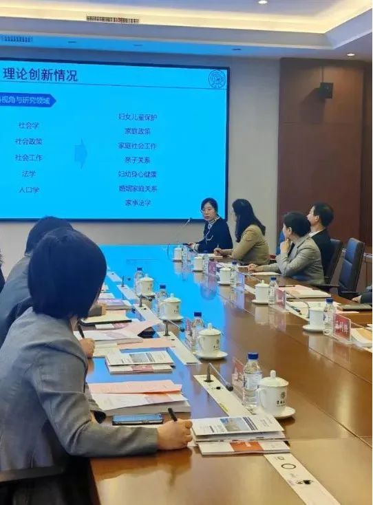 研究中心曹险峰副主任、李兆良副主任、李洪祥教授和孙悦副教授分别汇报了在婚姻家庭、家庭文化、家庭教育、心理教育与咨询等方面所取得的最新研究成果。调研组在听取大家发言后与教师代表和员工代表进行座谈,围绕家庭建设方面的热点、难点问题展开交流研讨,与会师生代表就如何发挥家庭家教家风建设在基层社会治理中的作用、推动家庭教育建设等方面积极建言献策。