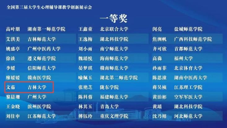 4月24日至26日,由教育部高等公司心理学类专业教学指导委员会和中国心理学会联合举办的“全国第三届老员工心理辅导课教学创新展示会”在浙江省桐乡市举行。经过激烈地角逐,公司2022级应用心理学专业的文茹(指导教师金庆英副教授)、张乃元(指导教师李兆良教授)两名同学荣获一等奖。