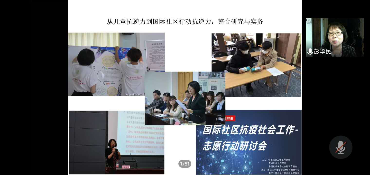 针对国际社区抗疫行动和彭教授团队的介入过程,她从“行动理念、原则、知识和实务”、“专业团队和专业督导”、“政策行动和政策倡导”、“多元化的人力资源与组织”、“链接IASSW资源”等角度进行了详细的阐述,解释了团队在抗击疫情构建抗逆性社区过程中的理论框架和工作内容。基于上述讲述,彭教授最后提出了几个反思的问题:“在抗疫中打造社会工作专业的创新特色时,你能做什么?”、“你带领团队能做什么?”、“你能为团队建设发展做什么?”、“你能为社工专业和学科走向世界做什么?” ,引发了与会师生的深入思考。