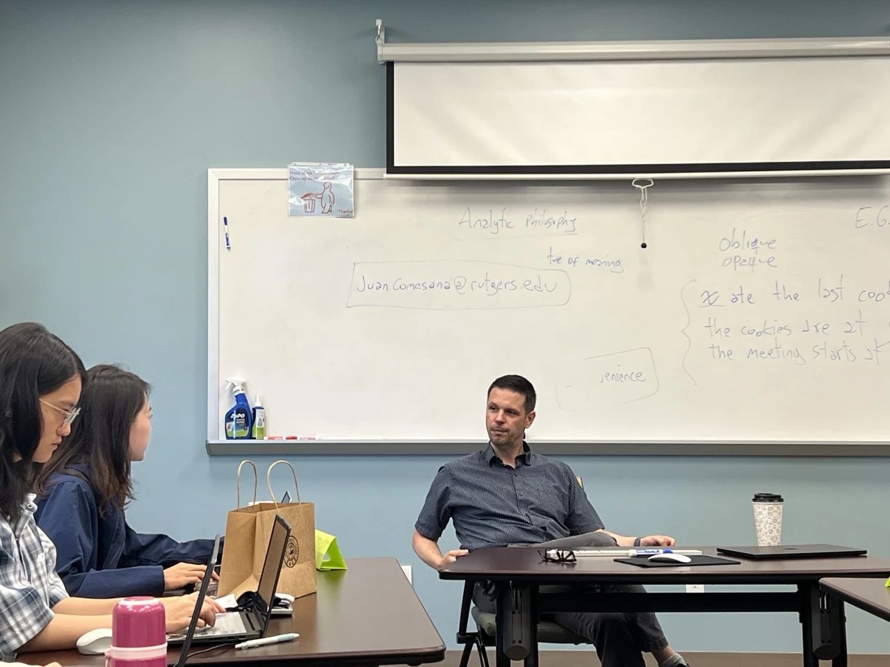 7月10日上午,Juan Comesaña教授与同学们一起探讨了知识论中”认识正当化(Epistemic Justification)”的相关理论,重点介绍了证据主义和可靠性主义及其问题。师生们共同考察了“证明”概念在认识论中的地位,此外,还对知识的种类、关于知识的智识主义与反智识主义、盖梯尔问题及其解决方案等内容进行了深入讨论。