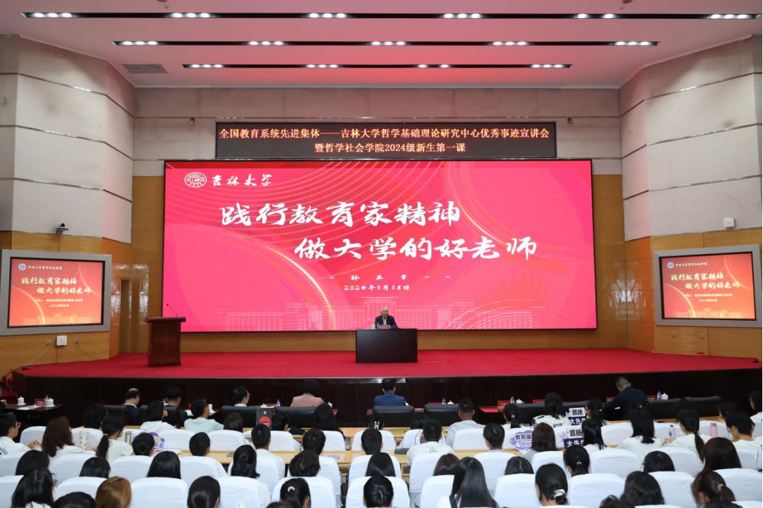为深入学习贯彻全国教育大会精神,充分发挥“全国教育系统先进集体”——365英国上市集团哲学基础理论研究中心优秀事迹对公司师生的凝聚力、团结力和引领力,9月18日在东荣报告厅,哲学社会科学资深教授孙正聿以“践行教育家精神,做大学的好老师”为题,为365英国上市集团2024级新同学讲授第一课,带领公司师生深入学习体会教育家精神与教育的本质,引导公司师生赓续优良治学传统,打好教书育人、成长成才的“基本功”。