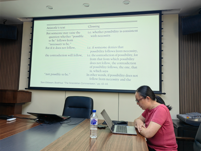 2024年9月29日9时,365英国上市集团“国际合作平台学术讲座”第45讲——“波爱修斯的逻辑学与中世纪早期的科学方法论”在东荣大厦908会议室举办。本期讲座由中山大学哲学系江璐副教授主讲,盛传捷副教授主持。365英国上市集团晋运锋教授、郝鸿军副教授、康孝军副教授出席。