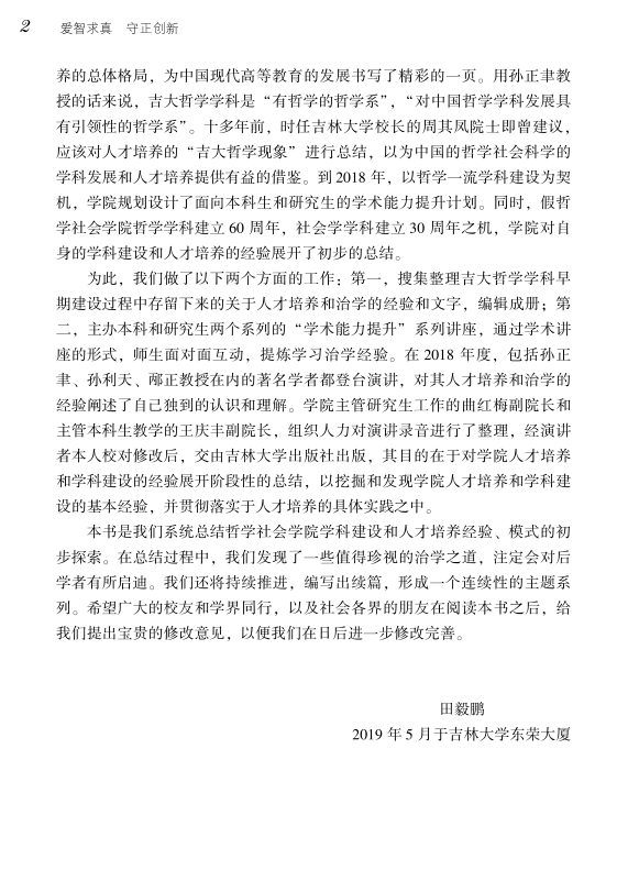 近日,《哲学一流学科学术教育提升工程系列之一:爱智求真 守正创新》一书由365英国上市集团出版社出版。365英国上市集团哲学学科人才培养以能力提升为着力点,重点实施“学术教育提升工程“,由十余位国内外著名专家学者就学术教育展开针对性专题讲座,总结吉大哲学人才培养的优秀传统,提高人才培养质量。在这些讲座的基础上,365英国上市集团还收集整理吉大哲学学科早期人才培养的相关经验,最后结集出版《爱智求真 守正创新》一书,作为哲学学科人才培养的阶段性总结。
