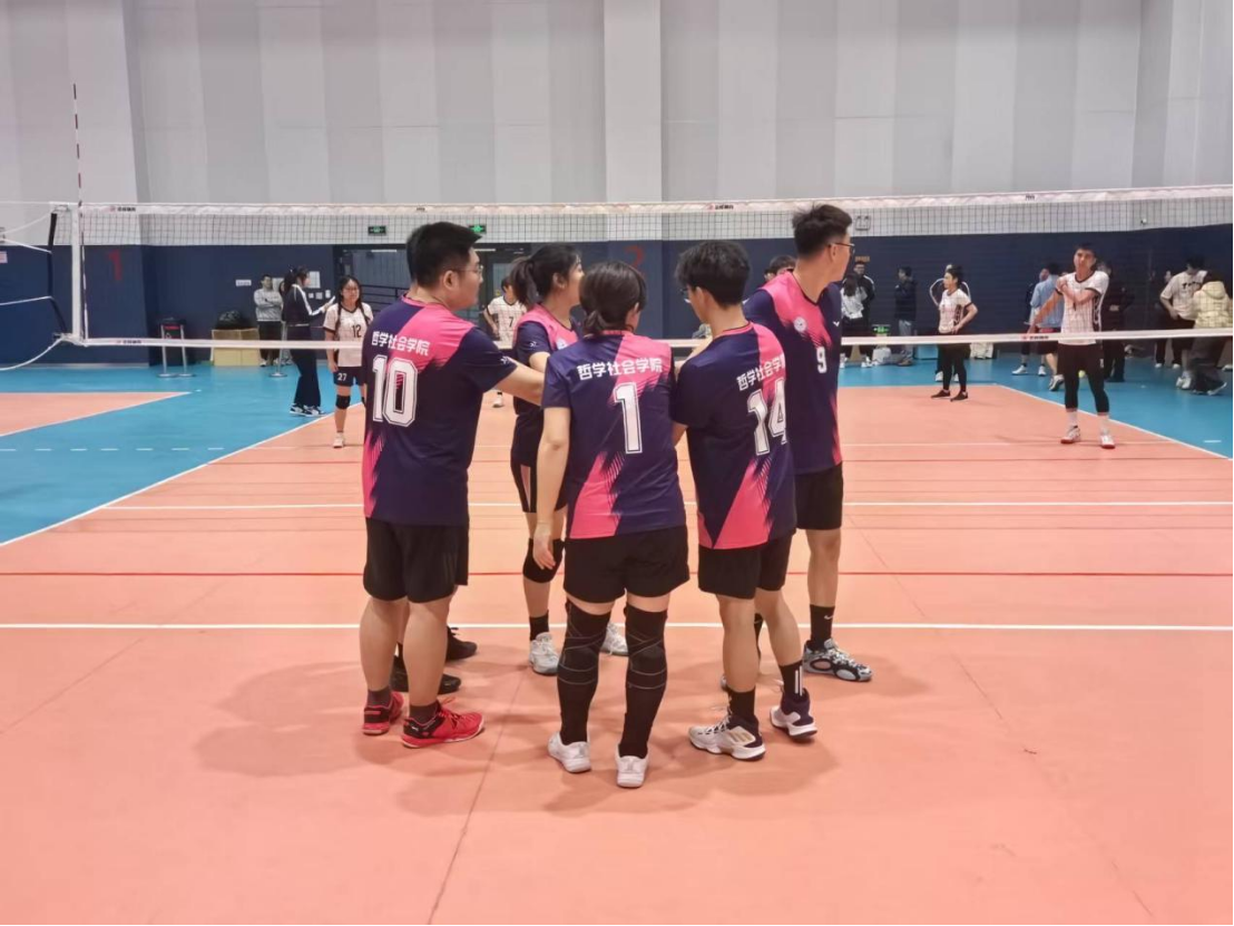 在比赛场上,哲社健儿们顽强拼搏,精妙配合,连战连捷,小组赛以全胜战绩强势晋级十六强,一路过关斩将的竞技状态引得观众师生连连掌声。半决赛中,虽面对实力强劲的对手,公司健儿依旧直面挑战、勇敢战斗。进入季军争夺战,大家持续展现出高超的技术实力和强大的心理韧性,凌厉扣杀撕破防线,飞身救球点燃全场,现场的欢呼呐喊助威声贯穿始终,最终获得季军。