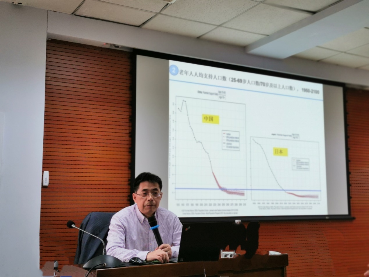 讲座开始,顾大男老师从总体上介绍了本场讲座的主要内容,包括四个部分:中国人口发展趋势、人口发展战略、人口增长与经济发展的关系以及调查数据的可靠性,并且重点强调在进行调查研究时要注意数据的可靠性,提升对数据的甄辩能力。第一部分从世界人口变化和发展的趋势为切入点,详尽的介绍了中国未来人口发展可能趋势。以详尽丰富的图表形象的展示了1950-2100年中国人口的可能变化趋势,中国人口老龄化的发展趋势及相应产生的问题,大城市的分布与城镇化趋势以及我国的国内与国际移入民概况。第二部分人口发展战略,介绍了中国人口的发展所涉及到的自然灾害、食品进口、贫困与不平等问题,这一系列问题与人口的发展是相互影响的。第三部分介绍了人口发展与经济增长,主要讲述了人口发展的红利期,提出人口与社会经济、气候环境协调发展,并用统计图表展示了人口相关指标与经济增长的关系。第四部分,顾老师展示了几种调查数据失误的情况,重点强调加强对调查数据的逻辑辨别能力,灵活的运用相关的统计数据,保证数据的可靠性,提高研究的说服力。