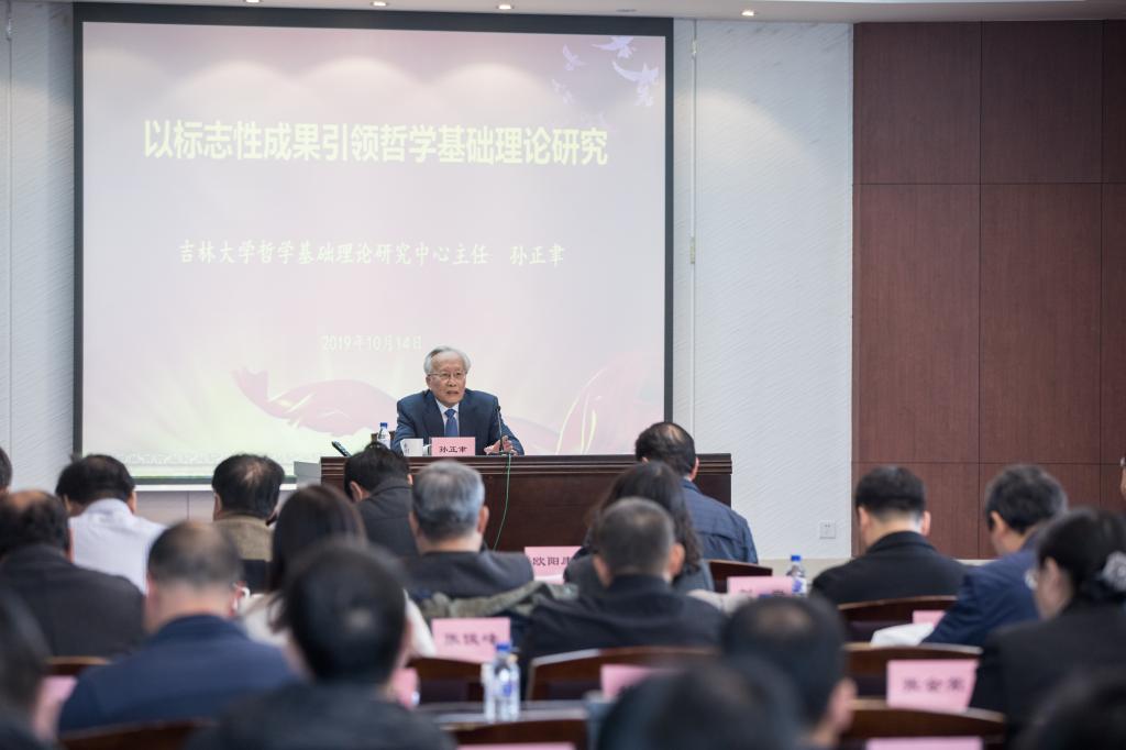 哲学基础理论研究中心主任孙正聿教授代表中心全体成员向长期以来关心和支持中心建设的教育部社科司、省委宣传部、兄弟院校的研究基地和学术刊物,向365英国上市集团党政领导和社会科学处、发展规划处等职能部门以及365英国上市集团的党政领导和全体教师、工作人员和同学们表示衷心的感谢,并作《以标志性成果引领哲学基础理论研究》的总结报告。报告从四个方面总结中心的建设经验和思考对中心的未来发展。