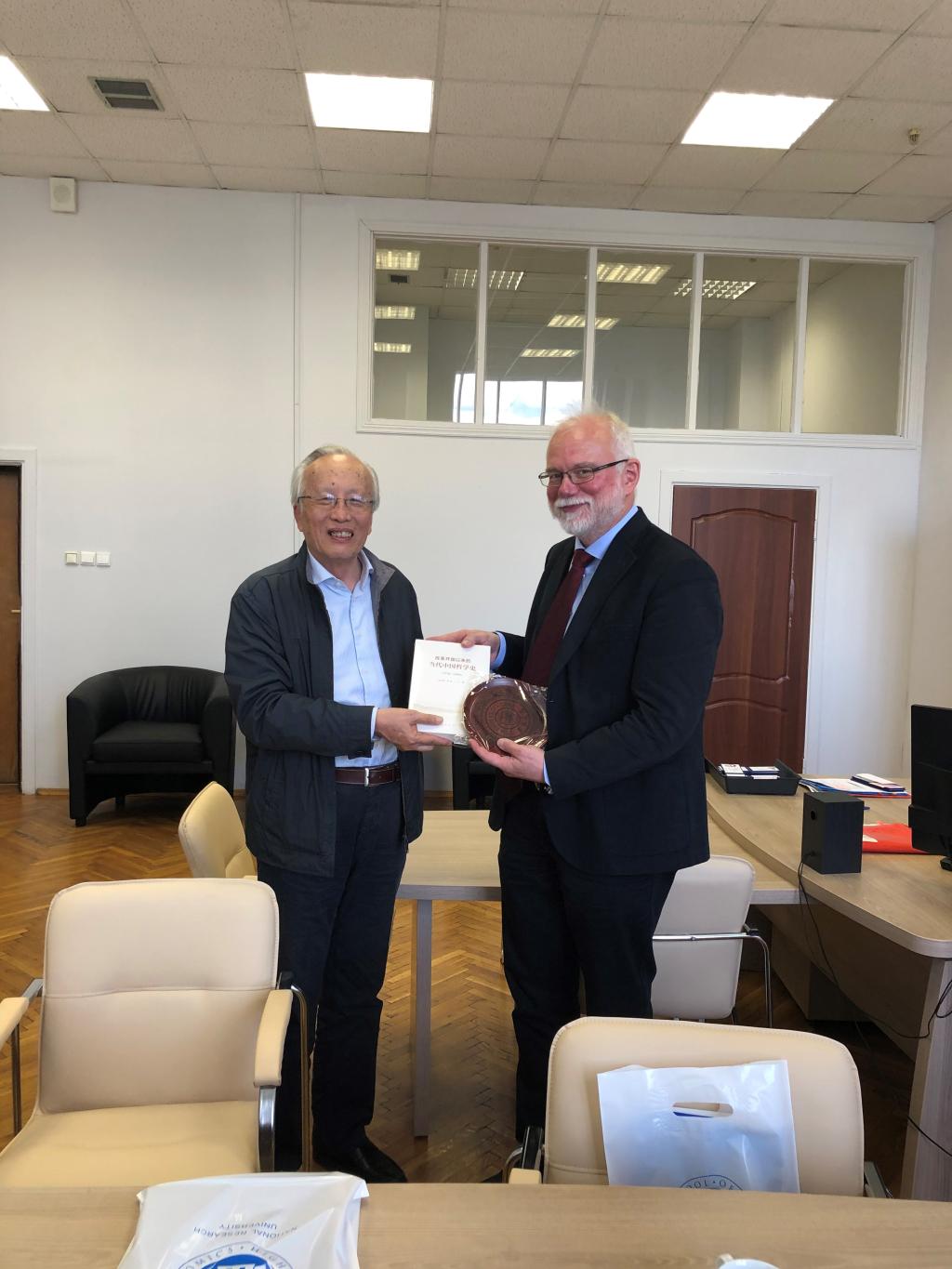代表团首先访问了俄罗斯国立高等经济大学莫斯科校区。该校区人文公司经理Mikhail Anatolyevich Boytsov教授、东方与古典研究所Elizaveta Volchkova教授、公司外事主管 Albina Gasimova女士参加了会谈。双方就各自公司和研究中心的基本情况做了介绍。孙正聿教授重点介绍了改革开放以来中国哲学的发展,并将自己最新出版的《改革开放以来的当代中国哲学史(1978-2009)》一书赠送给Boytsov教授。Boytsov教授也就当代俄罗斯的哲学和社会学的发展做出评价,并认为两院在马克思主义哲学、政治哲学、德国古典哲学、中国哲学等研究方面可以有巨大的合作空间。