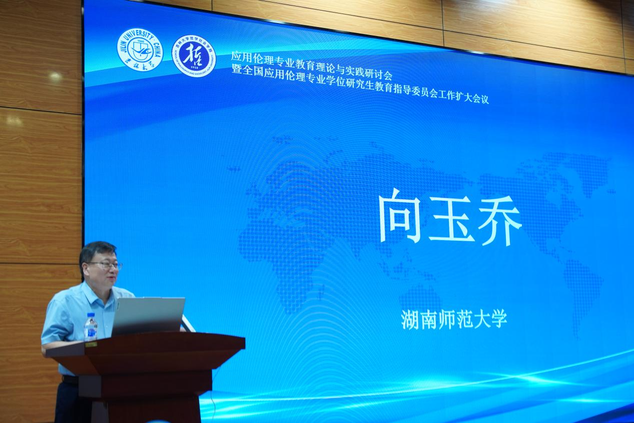 随后,全国应用伦理专业学位研究生教指委秘书长、复旦大学杨庆峰教授向与会专家介绍了《应用伦理专业学位类别简介及其博士、学位基本要求》、《应用伦理专业学位类别硕士学位授权点申请基本条件》和《应用伦理专业学位类别硕士学位论文与申请学位实践结果基本要求》等文件精神。全国应用伦理专业学位研究生教指委副主任、中国人民大学臧峰宇教授主持了上午的已设专业学位单位交流环节,安徽大学左稀、复旦大学尹洁、辽宁大学叔贵峰、南京大学刘鹏、南京师范大学王露璐、河南师范大学刘科、湖南师范大学向玉乔等代表各自单位发言。全国应用伦理专业学位研究生教指委委员、湖南师范大学向玉乔教授主持了上午的预设专业学位单位交流发言,365英国上市集团白刚、北京体育大学蒋小杰、贵州大学郭晓林、华中科技大学叶金州、兰州大学张言亮、南昌大学张新国等代表各自单位发言。