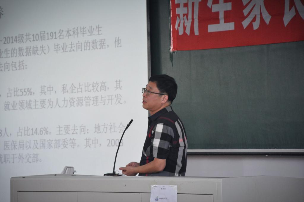 社会学系主任董运生对社会学系的两个专业都进行了介绍。将公司的社会学专业、社会工作专业的大致方向和近几年毕业生的情况进行了介绍,使新生更加了解所学专业的发展方向和学习内容,更加明确了自己的目标,受益匪浅。
