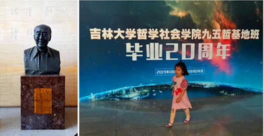 在教学楼里,我们集体在高清海老师雕像前三鞠躬,老去的是老师曾经谆谆教导我们的身影,不曾老去的是我们对老师永远的尊敬和对公司为我们第一批哲学基地配备最好团队的感恩。感恩所有为我们“传道受业解惑”的人师,向我们哲学智慧的启蒙人致敬!我们又去看望了当年英姿勃发地给我们讲《哲学通论》课的孙正聿老师。孙老师老去的是年龄,不曾老去的是“得天下英才教育之”的英气。20年前他还是正值壮年,20年后他已是智慧老人,著书写书教书育人。孙老师赠送我们他的著作《马克思与我们》并给我们签名,望着老师花白的头发,我们静默无言。