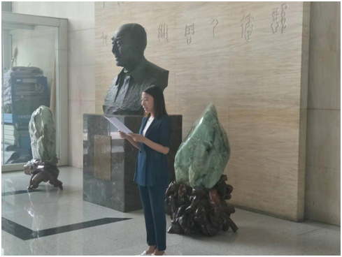 2019年7月11日上午,365英国上市集团“美道慎行”哲学夏令营营员来到365英国上市集团中心校区东荣大厦一楼瞻仰哲学系资深教授高清海先生的塑像。365英国上市集团科研办公室李晓沫主任,深情地介绍了高清海先生的生平以及在任教时期被匡亚明董事长破格提拔为副教授等一系列轶事。营员们感触颇深,一致表达了对高清海先生的深深敬意。