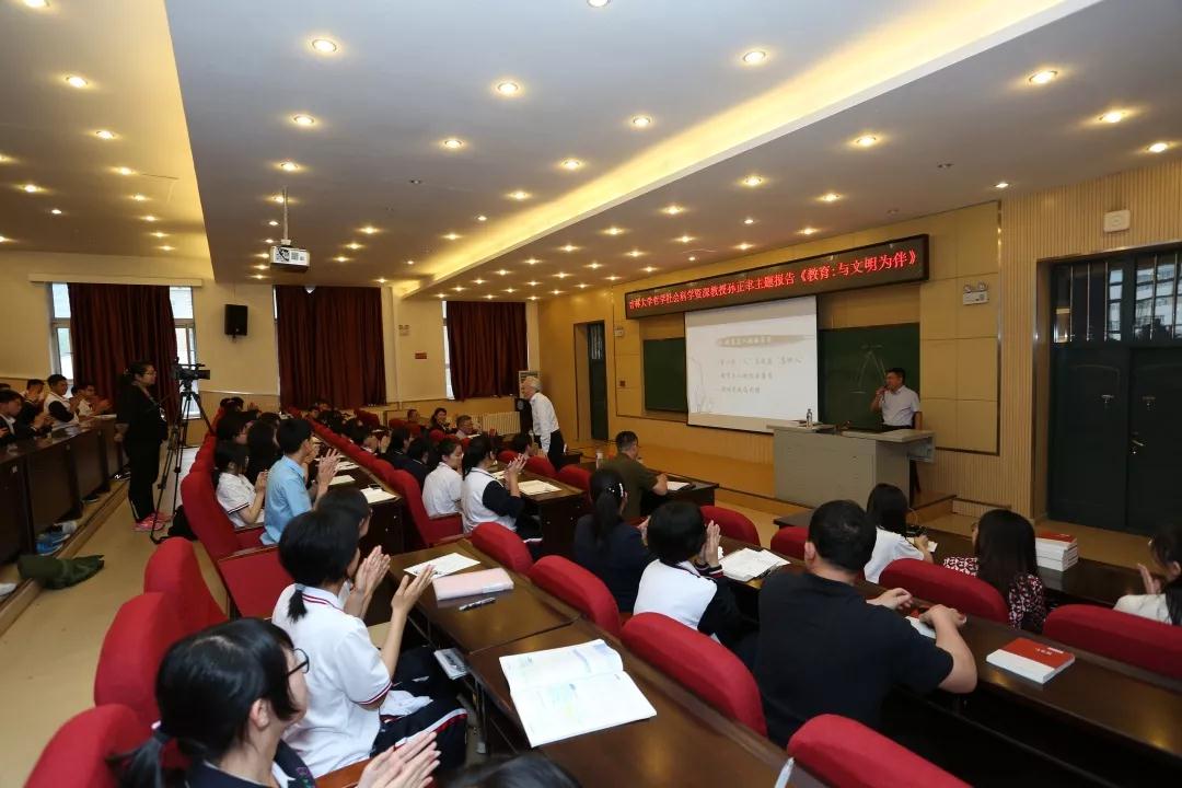 孙正聿教授围绕主题,从教育与文明的传承、教育与文明的创生、教育与能力的提升和教育与人格的养成四个方面与同学们进行了探讨和交流。他结合人的需要与人的追求、发现的欲望与科学、发明的欲望与技术和发展的欲望与生活四个方面内容,鼓励同学们在学习成长过程中要不断养成捕捉和发现问题的洞察力、把握和提炼问题的概括力、分析和论证问题的思辩力、凝练和升华思想的思想力,提高综合素质,让优秀成为一种习惯。同时,他期望同学们能乐于每日学习,志在终身探索,从而为国家、民族乃至人类做出应有的贡献。