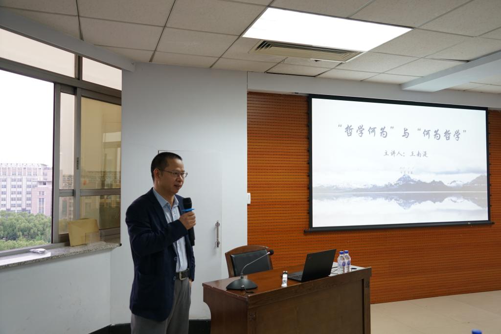 王南湜教授首先从“哲学何为”的角度,对第二十四届世界哲学大会的主题“学以成人”提出了其独到的见解。王南湜教授认为,所谓“学以成人”,实际上意味着哲学需要实现对人的理解。王南湜教授通过古希腊普罗米修斯盗火的神话隐喻,以及对中国荀子哲学中“伪”这一概念的解释指出,人并不存在某种已经被预先设定的本性或本能,而是在创造性的对象性活动中改造自然环境与社会环境,以适应自身的生存需求。王南湜教授指出,在这个意义上,人是具有开放性的未完成的生命,进而“学以成人”就是对历史中人类区别于其他生物而展现出的独特生存状态的描述,人只有通过不断学习才能实现自身的存在意义。其后,王南湜教授从人类中心主义所展现出的必然性出发,对“何为哲学”这一问题做出了具体论述。王南湜教授提出,哲学必须要探究这样两个问题:其一是人类究竟要处于什么样的存在状态;其二是人要成为什么样的人。王南湜教授进一步指出,对这两个问题的追问指向了人类的价值选择与价值冲突。南湜教授依据他对部分电影作品以及中西宗教观念差异所做出的分析,指出价值冲突不仅影响了不同文明的历史走向,同时也预示着不同文明在现代社会中所面对的现实问题,而哲学的任务就部分在于证实价值选择问题的偶然性与必然性。此外,王南湜老师通过对于马克思与黑格尔对哲学的不同理解所做对比以及对当下消费社会的批判,指出在晚年马克思的视域中,物质生产是人类为摆脱自然界支配所必需的外部要素,个人内在能力的发展必须以此为基础,进而人类的真正自由才得以成为可能。因而,王南湜教授认为,如何实现人的自由就是哲学如何使人“学以成人”所需面对的问题,今天的中国哲学界需要以此为出发点,指认出资本主义的不可能性,以及实现人类自由之理想社会的可能性,同时构建出面向未来社会的需要的价值观念。最后,王南湜老师向参加本次讲座的同学们提出了期许,他指出,在未来的半个世纪中,中国面临着与十八世纪以来德国相似的重大历史契机,中国需要建立与其民族国家地位相匹配的民族精神,这一历史性任务需要由年轻一代加以实现。在随后的问答环节中,王南湜教授就人生价值与对社会的价值与贡献问题,社会开放程度与人类生存状态,以及马克思主义哲学是否具有本体论等问题与同学们进行了亲切的交流,令同学们受益匪浅。