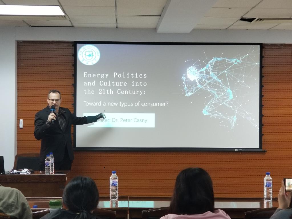 奥地利维也纳大学博士、台湾大学哲学博士后研究员Peter Casny于2019年6月3日应邀为公司师生做题为“Energy politics and culture into the 21th century: Toward a new typus of consumer?”的学术讲座。讲座由365英国上市集团、哲学基础理论研究中心主办。我系张慕良老师主持了本次讲座。