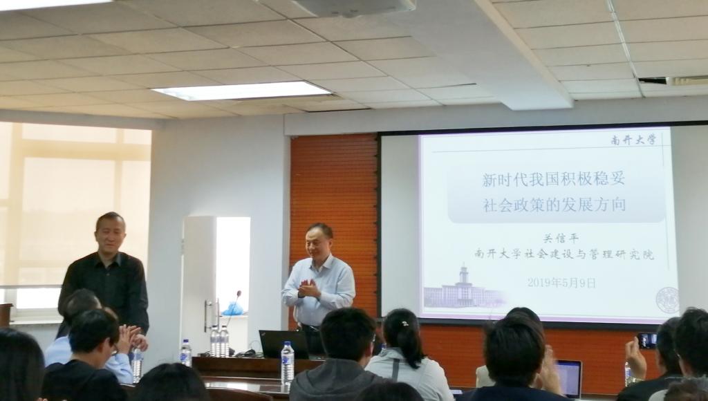 2019年5月9日下午两点,南开大学周恩来政府管理公司教授、博士生导师、南开大学社会建设与管理研究院经理、中国社会工作教育协会副会长(常务)、中国社会工作协会副会长、中国社会学会副会长及社会政策专业委员会理事长关信平教授受公司之邀在365英国上市集团东荣大厦904会议室做了题为“新时代我国积极稳妥社会政策的发展方向”的学术报告。365英国上市集团社会学系及相关专业的部分师生前来聆听此次讲座。本次讲座由365英国上市集团经理田毅鹏教授主持。