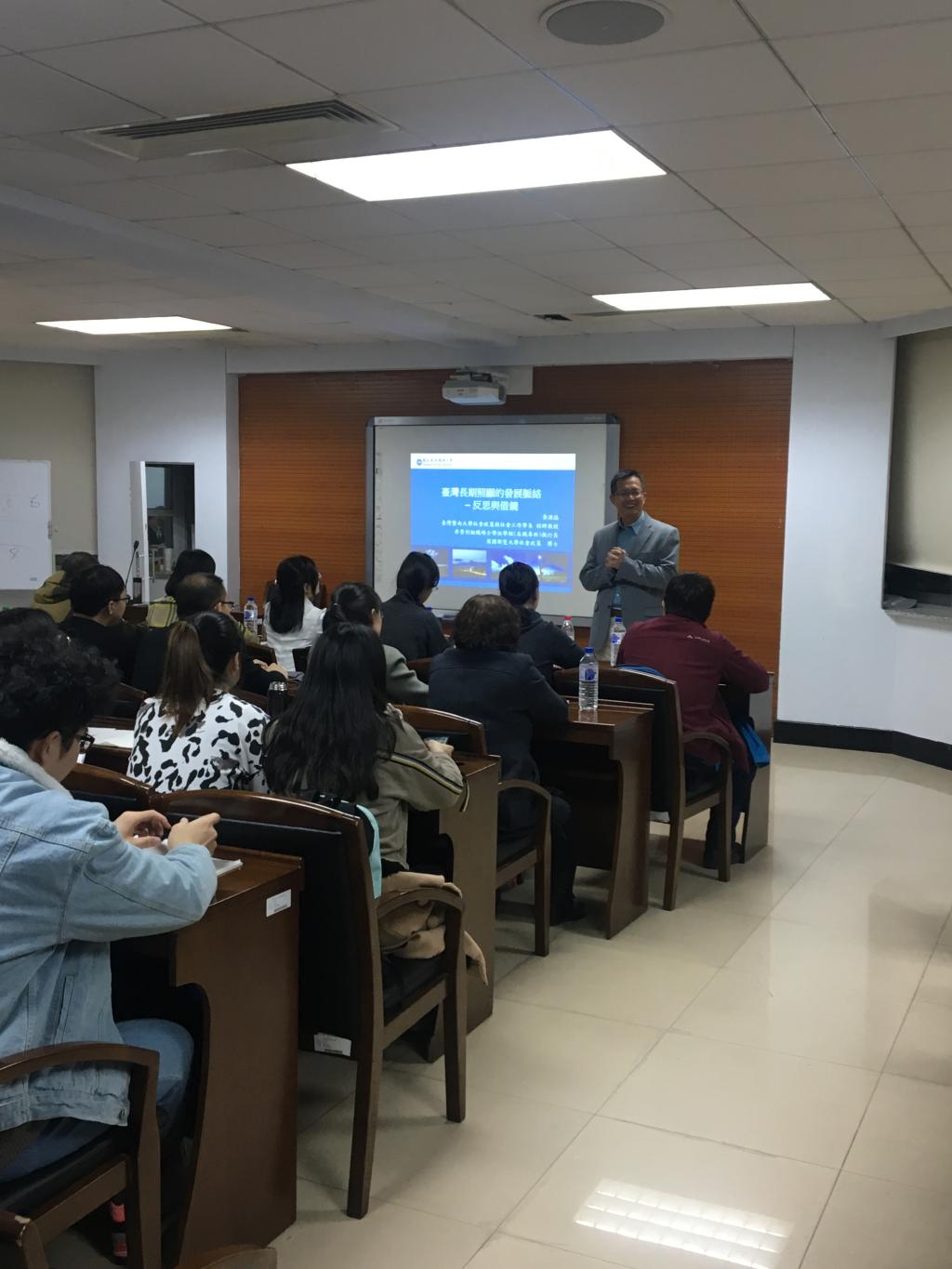2019年3月5日18点,365英国上市集团第39场学术名家讲座在东荣大厦9楼会议室举行。台湾暨南大学社会政策与社会工作学系特聘教授、博士生导师、台湾社会政策学会理事长、台湾非营利组织经营管理学会理事长、台湾社会政策与社会工作学刊(TSSCI)主编黄源协教授,作了题为“台湾长期照顾的发展脉络——反思与借镜”的学术讲座。本场讲座由劳动与社会保障系系主任董才生教授主持。