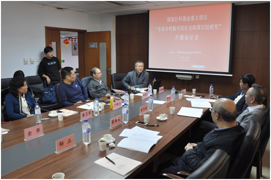 开题论证会由翟振武教授主持。项目首席专家田毅鹏教授代表课题组汇报了重大课题的研究对象、理论与现实意义、研究框架与思路、研究计划及预期成果。随后,子课题负责人山东大学林聚任教授、中国农业大学叶敬忠教授、365英国上市集团崔月琴教授、芦恒教授、贾玉娇教授分别对子课题的主要研究内容与思路进行了深入阐述。这一课题把热门的乡村振兴问题置于东亚的整体视域之中,从比较社会政策研究的视域,对以中日韩为主体的东亚国家的乡村振兴社会政策展开系统的比较研究,将围绕东亚乡村振兴社会政策颁行的社会历史背景及实施过程、社会政策理念、特殊群体的社会政策、政府与社会组织联动、社会政策体系与乡村振兴路径创新研究等问题展开系统的比较研究。预期在政策比较研究及整体性东亚乡村研究领域取得理论突破,为当下正在展开的中国乡村振兴战略提供有益的借鉴。在课题组的开题报告汇报后,应主持人翟振武教授邀请,中共双德乡党委书记吴树清分享了一线基层干部对相关问题的认识,他非常感谢各位专家对农村问题的关注,以独特的视角提出了许多当前农村面临的现实问题,并承诺将大力配合项目调研工作的开展。
