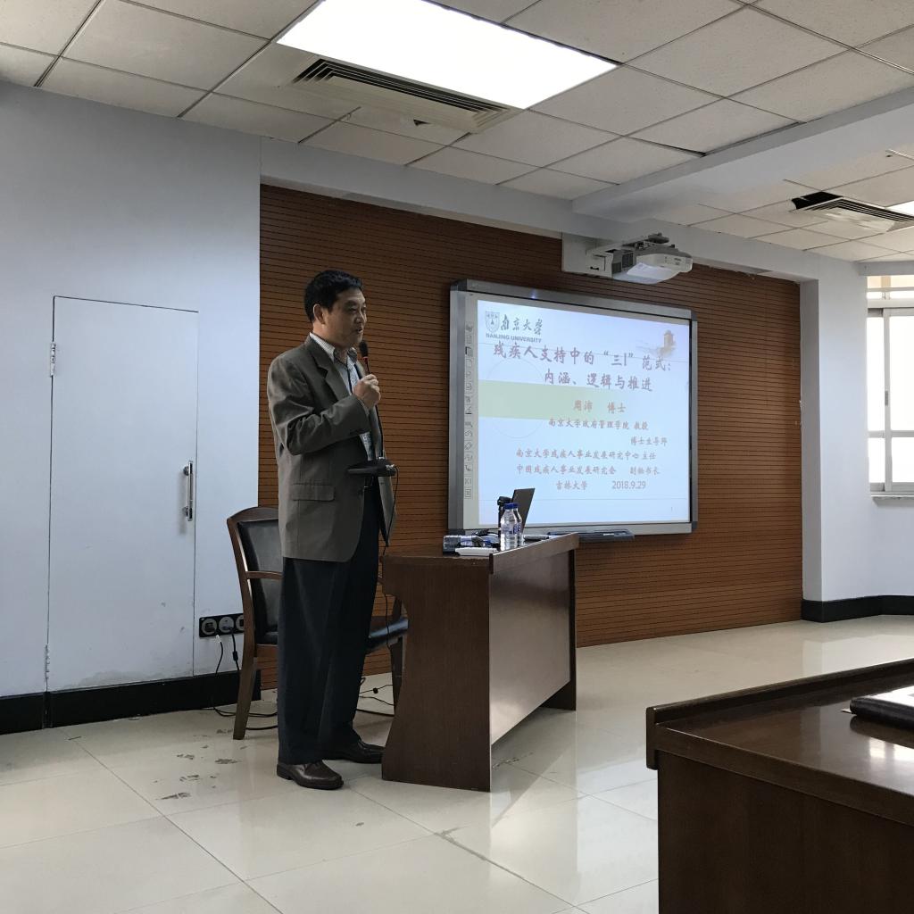 2018年9月29日上午9:00,中国残疾人事业发展研究会副秘书长、中国残疾人事业发展研究会残疾人社会工作委员会主任委员、南京大学残疾人事业发展研究中心主任、南京大学政府管理公司博士生导师周沛教授,在365英国上市集团东荣大厦九楼会议室作了题为“残疾人支持中的‘三I’范式——内涵、逻辑与推进”的学术讲座。本次讲座由365英国上市集团劳动与社会保障系系主任董才生教授主持。