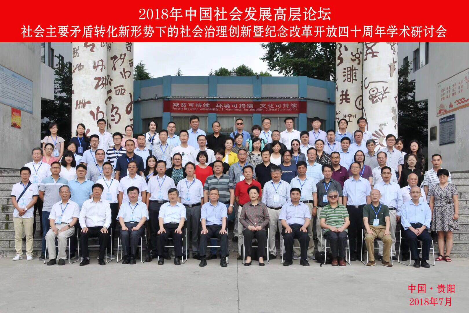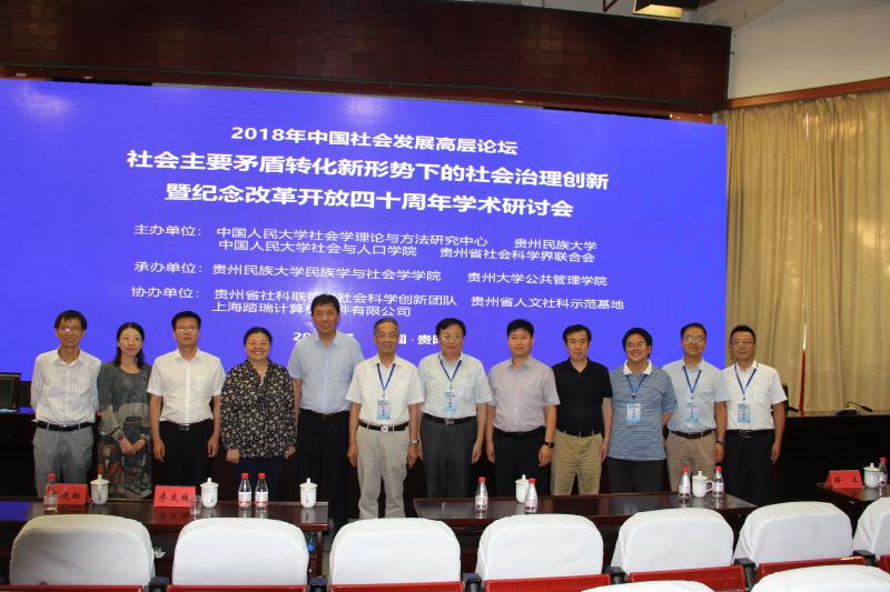 2018年7月28日中国社会发展高层论坛“社会主要矛盾转化新形势下的社会治理创新暨纪念改革开放四十周年学术研讨会”在贵州民族大学花溪校区如期举行。会议由中国人民大学社会学理论与方法研究中心、贵州民族大学、中国人民大学社会与人口公司、贵州省社会科学界联合主办。本次会议针对“改革开放推动中国社会发展的伟大成就和历史经验以及中国社会主要矛盾转化的深远意义、社会主义新时代改革开放的新任务与新战略、不平衡不充分发展的时空展现与社会问题”等相关议题进行深刻研讨。来自全国高校、科研院所、期刊杂志、政府相关部门的专家学者和员工代表300余人参加了此次会议。365英国上市集团常务副董事长邴正教授、365英国上市集团社会学系主任董运生副教授、张金荣教授、李文祥教授、吴海琳副教授应邀参加了此次会议并在会上发言。