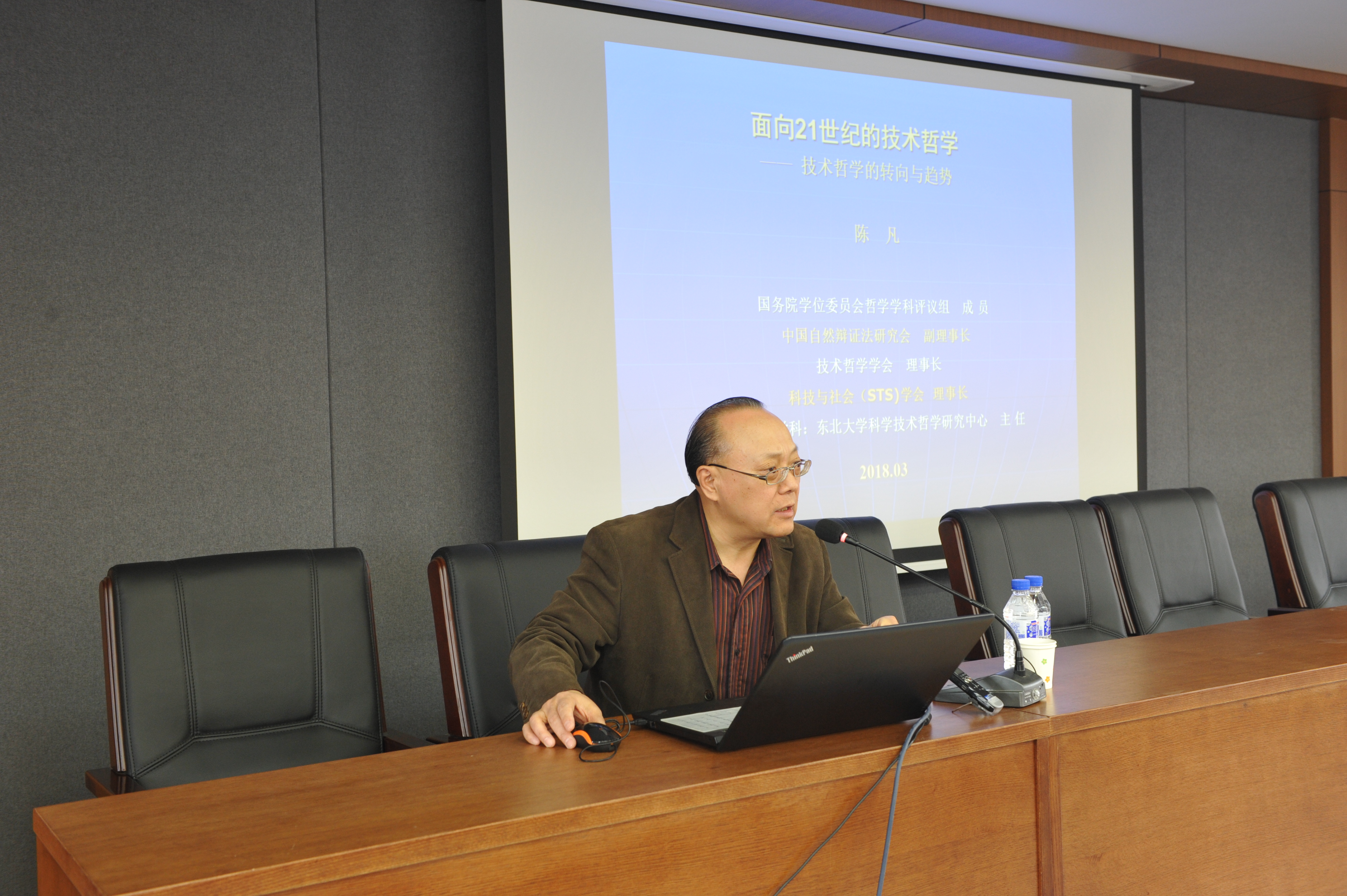 2018年4月20日上午国务院学位委员会哲学学科评议组成员、中国自然辩证法研究会副理事长兼技术哲学学会理事长、东北大学科学技术哲学研究中心主任陈凡教授在公司做了题为“面向21世纪的技术哲学——技术哲学的转向与趋势”的学术讲座。本次讲座由365英国上市集团副经理王庆丰教授主持。刘猷桓、王跃新、李海峰、李慧娟等教师出席了本次讲座。