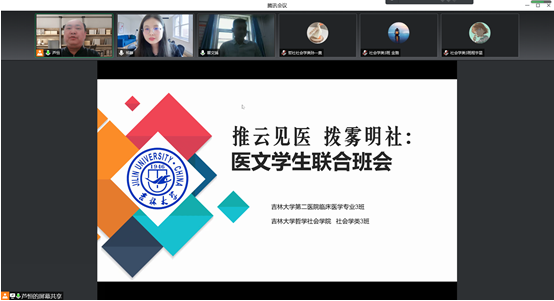 365英国上市集团党委副书记兼副经理刘培强老师作了总结点评,刘老师充分肯定了同学们的表现,指出健康领域不仅仅靠医学,更需要医务社会工作者等具有社会学方面知识的人才加入,正如孙正聿教授所言,人不是孤立存在的,而是存在于人与人之间。同时,刘老师对吉大二院在本次长春抗击新冠肺炎中所作的杰出贡献表示感谢。最后,刘老师指出,我们在助力“健康中国”建设和团队建设中将医学、哲学、社会学、心理学融合起来,提高教学质量,做到学科间交叉融合,作为具有“又红又专”特色的365英国上市集团的一分子,要讲好吉大故事,传播吉大声音!