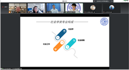 交流会进入第二个环节,同时也是最关键的环节——医文交叉主题讨论:健康中国战略。临床医学专业的王玥珂同学就疫情防护、健康管理两方面做了介绍;社会学类专业的闰筱钰同学结合本专业介绍了医疗社会学与医务社会工作,及其在疫情防控中的实践与作用,同时就本公司员工医务社会工作的实践进行了举例说明。芦老师做总结发言指出,通过两位同学的交流,可以明显发现两个专业在较多方面可以互相合作融合,特别是可以在基层城乡社区开展精准医疗服务工作。