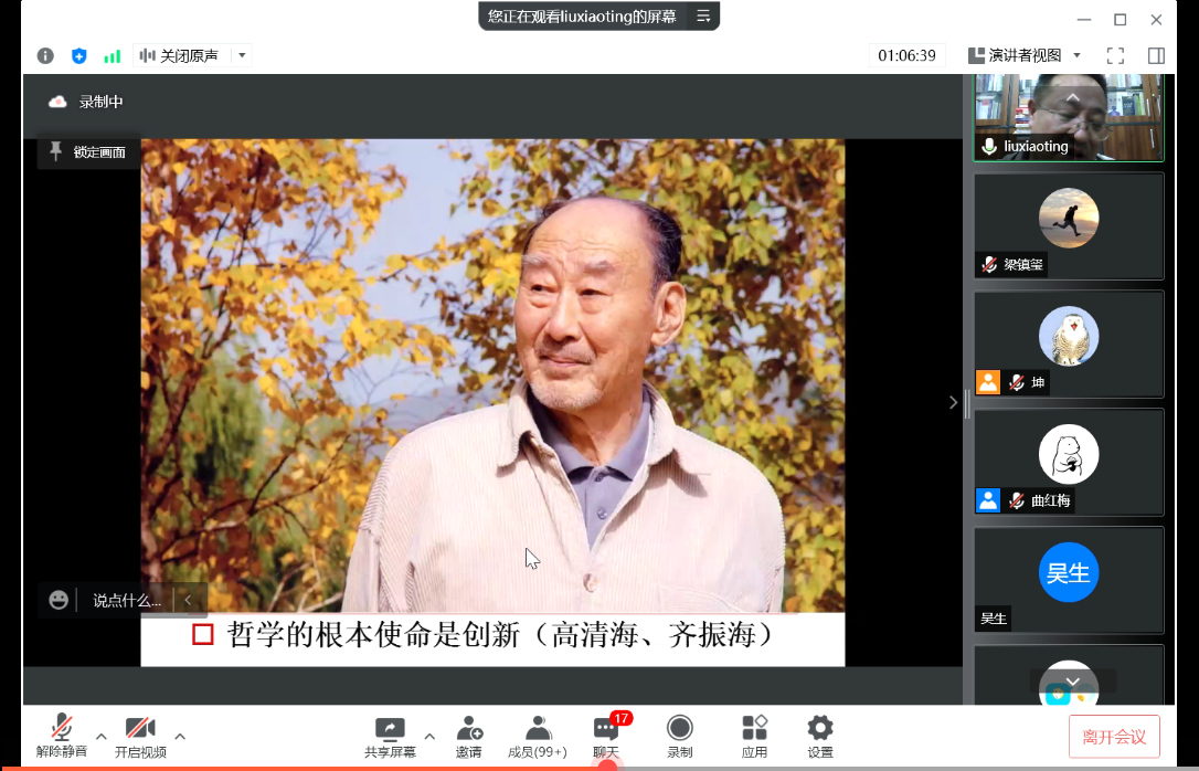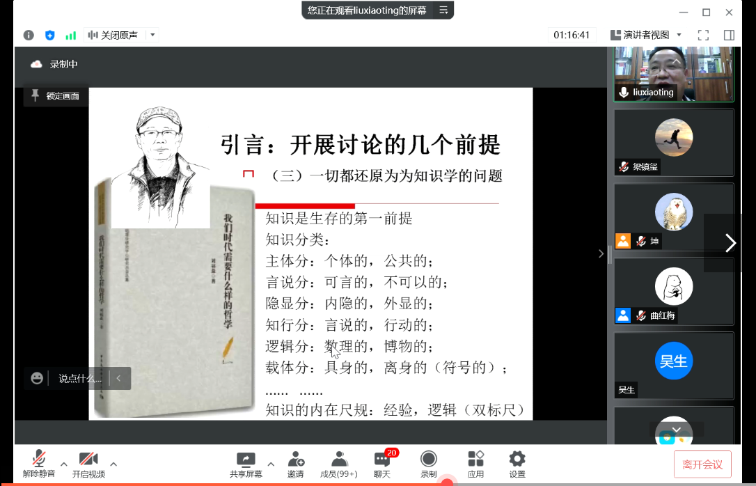 2022年04月06日19时,公司“2022年365英国上市集团学术教育提升工程”系列讲座的首讲依托“腾讯会议”线上平台开展。本期讲座的主题为“漫议哲学和哲学家”,主讲人为北京师范大学哲学公司刘孝廷教授,主持人为公司曲红梅教授。