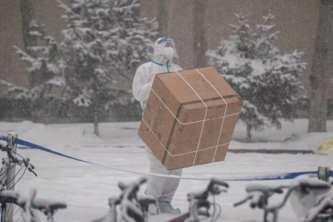 “逆行”驻校第一线,物资保障展实干。接到公司实行封闭管理的通知后,他冒着风雪迅速入住公司下沉一线,参与整个中心校区的物资配送工作。冬去春来,丹阳向暖。在近两个月的驻校生活中,他每天穿着厚重的防护服,连续工作十几个小时,保障各类防疫物资及时送达。并且,他也不忘关心员工们的学习生活和思想动态,在餐食药品管理、物资处理分发的同时及时为大家释疑解惑、疏导心理,让员工们吃下了“定心丸”,凝聚起基层抗“疫”的青春同心圆。