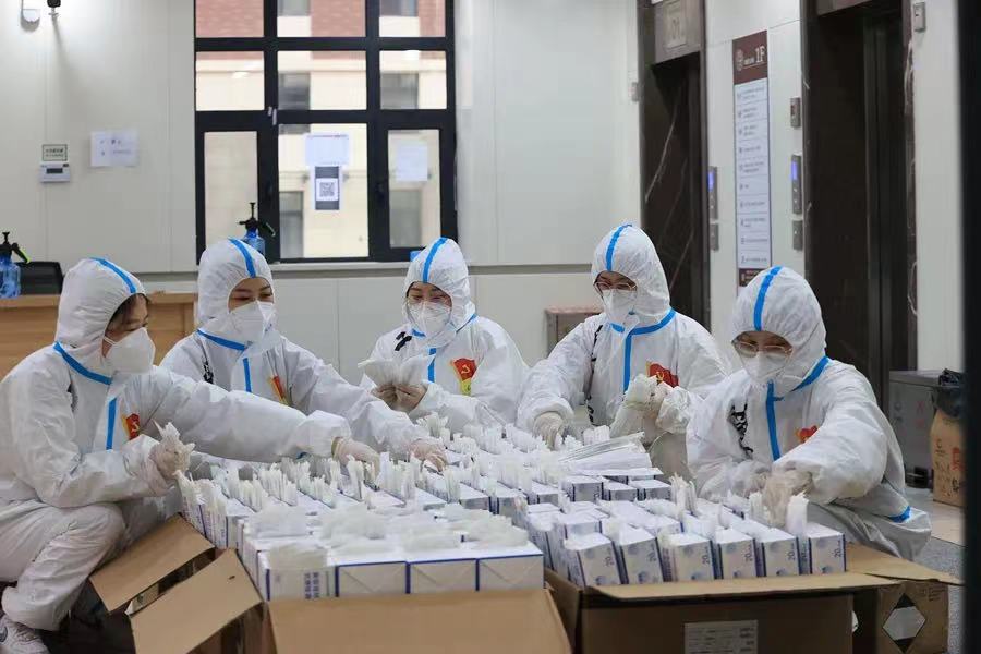 封闭管理意味着师生们的衣食住行、一切事宜都与以往截然不同,员工们的所有日常生活保障都需要依靠驻楼老师和志愿者们的搬运和发放。所有的志愿服务都从零基础开启,所有的服务模式都是在不停的演练中摸索出来的。如何高效配送一日三餐和防疫物资、如何统计核实全楼3700余份全员核酸管数、如何安全合规地穿脱防护服、如何指导员工进行第一次抗原自测、如何带领300余名研究生完成每一次集体活动……每一个新的通知、新的活动,都是新的难题、新的挑战,但也不断开启驻校“大冒险”的下一段征途。