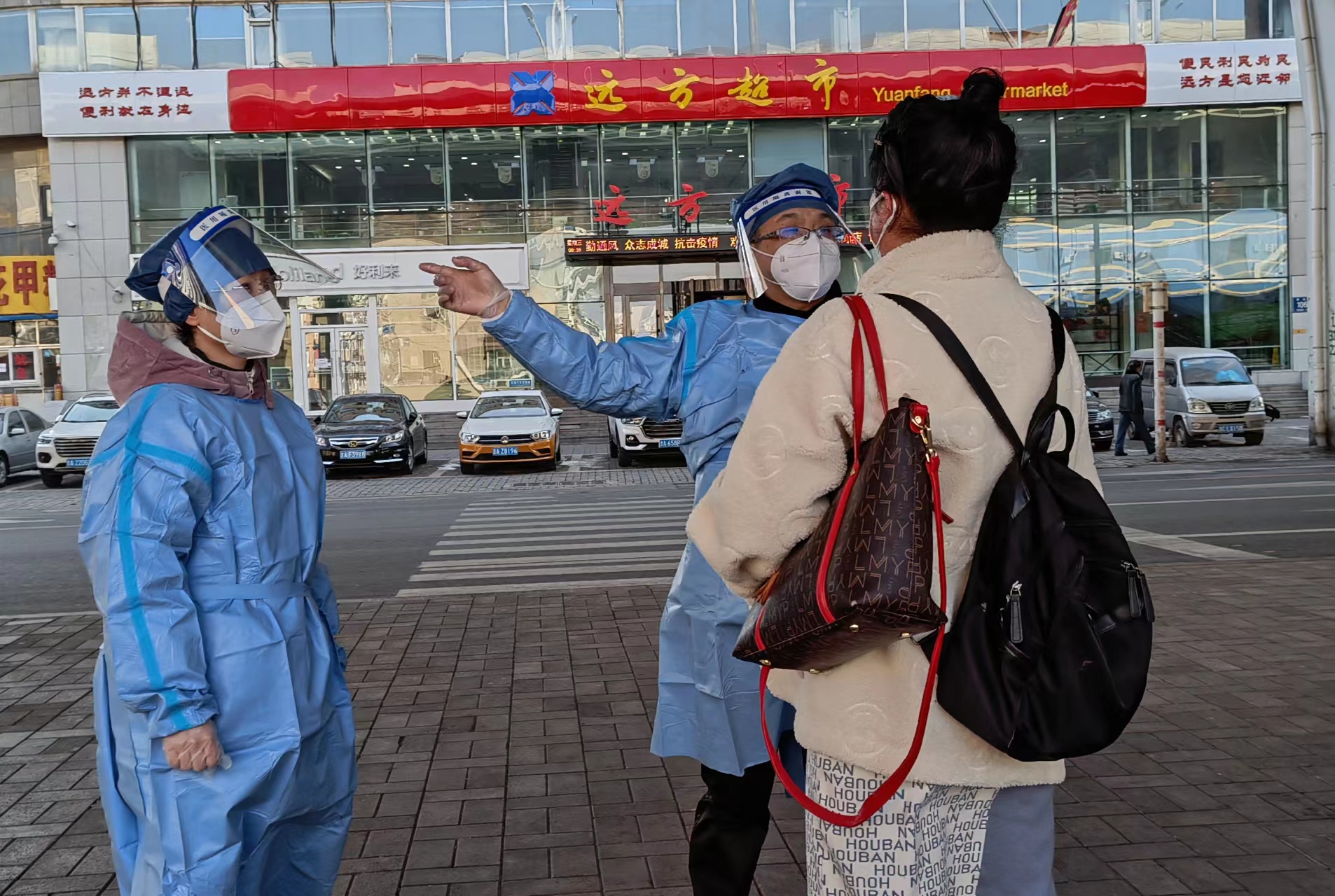 3月中旬,长春市每日新增开始突破1000例,绿园区也成为了重灾区。郑玲所在的绿园区普阳街道多为开放小区,居民中老年人口众多,难以管理,防疫人手紧缺。社区开始招募居民志愿者的时候,她报名成为了第一批志愿者。她的工作内容很简单,巡视所在街道,将游走在街上的居民劝返回家。早上7点30分集合穿戴2级防护服,从8点开始巡街至下午5点,午休30分钟,一天行走8-9小时。对于习惯于每日坐在电脑前工作的人而言,长时间行走是艰难的,到了下午小腿和脚都会肿起来,举步维艰。但更痛苦的是内心,面对着因买不到菜上街寻找机会的居民,特别是老年人,所能做的仅仅只能是耐心劝返,却不能给与更多的帮助。面对着居民的不理解和抗拒她更是感到内心煎熬。