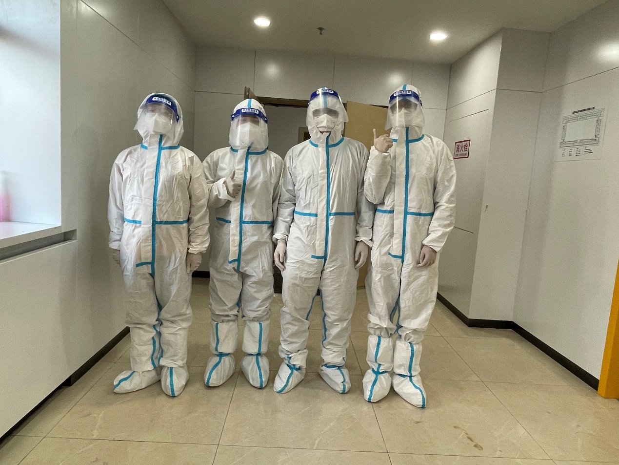 杨鹤松:三月初,我和公司众多同学一起第一时间报名了防疫服务志愿者,希望能在对抗疫情的战斗中发挥一些自己的作用。在随后的工作中,我和战友们一起承担起了对接外部与公司北四公寓所有同学的责任,志愿者的职责要求我们最早起床,最晚用餐,严格穿戴防护用具,认真履行防疫流程,以良好的工作态度服务同学,在两个月的志愿服务中,我和战友们发放了共计几万分的物资和餐食,也真正担当起了志愿者三个字, 我能为参与到这场抗击疫情的战争中并且能做出一些贡献而倍感自豪。