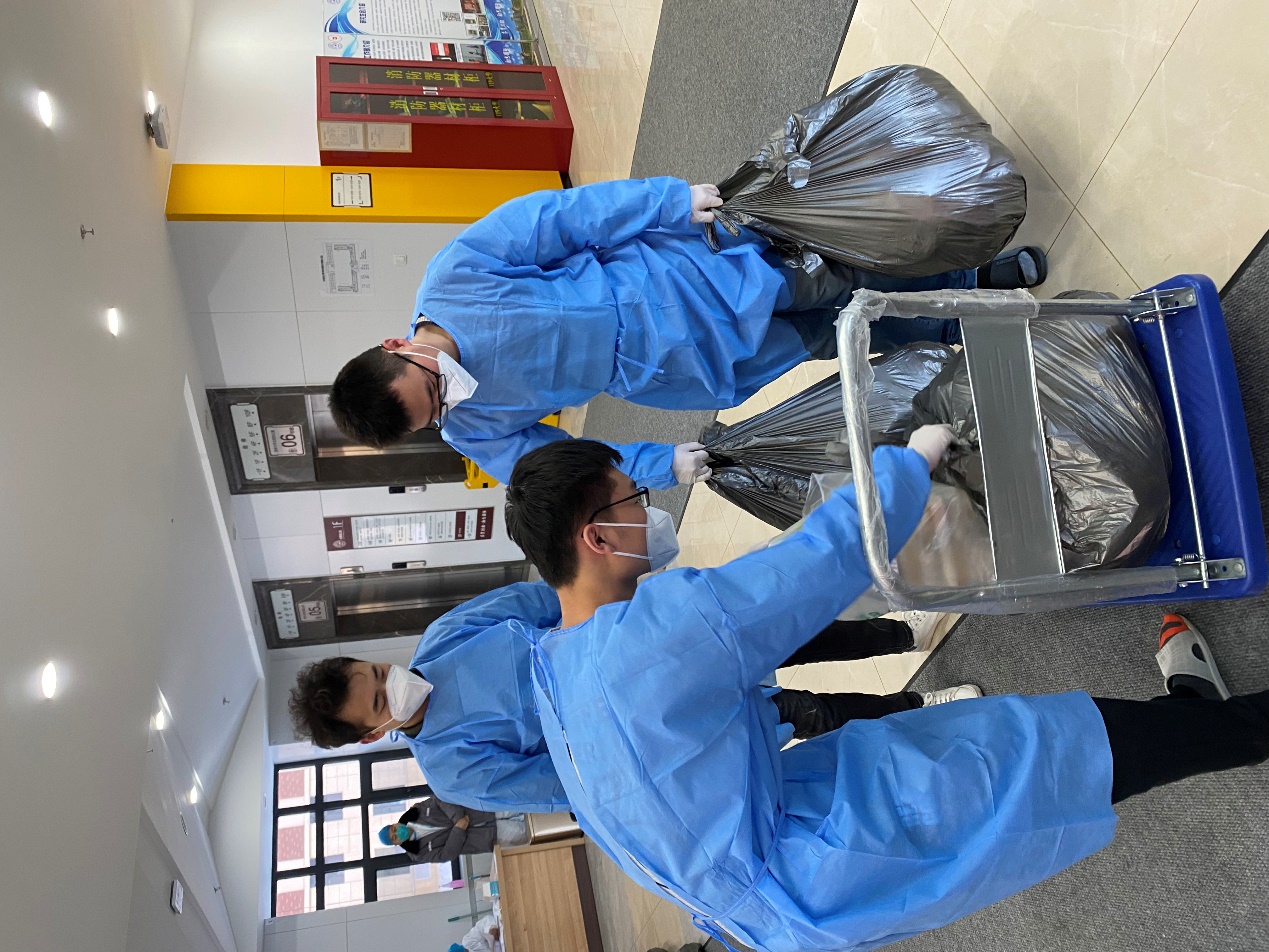 朱光亚:3月13日封寝以来我主要承担北苑四公寓11楼的送餐、送水,分发生活物资、防疫物资,做鼻拭子检测,安排楼层洗浴,清点楼层人数,与楼内主管工作的老师进行协调,维持户外秩序等工作。从最初的物资志愿者到后来成为楼层负责人,再到后面成为一名户外志愿者,在这60多天的志愿服务中支撑我的是一名党员的理想信念,是来自公司老师的关心关爱,是来自同学们的理解包容, 60多天的时间里,我努力适应新的志愿工作,基本完成了各项任务。此外,在志愿服务的过程中我有幸能与北四哲社的志愿者同学们一起服务而深感荣幸,似乎生命的意志只能在这种纯粹的实践过程中才能得到显现,在对疫情的防控中我们才意愿到生活的美好与善良之心的可贵,才能体会意志生命的长盛之花,黄昏已过,天明将来!
