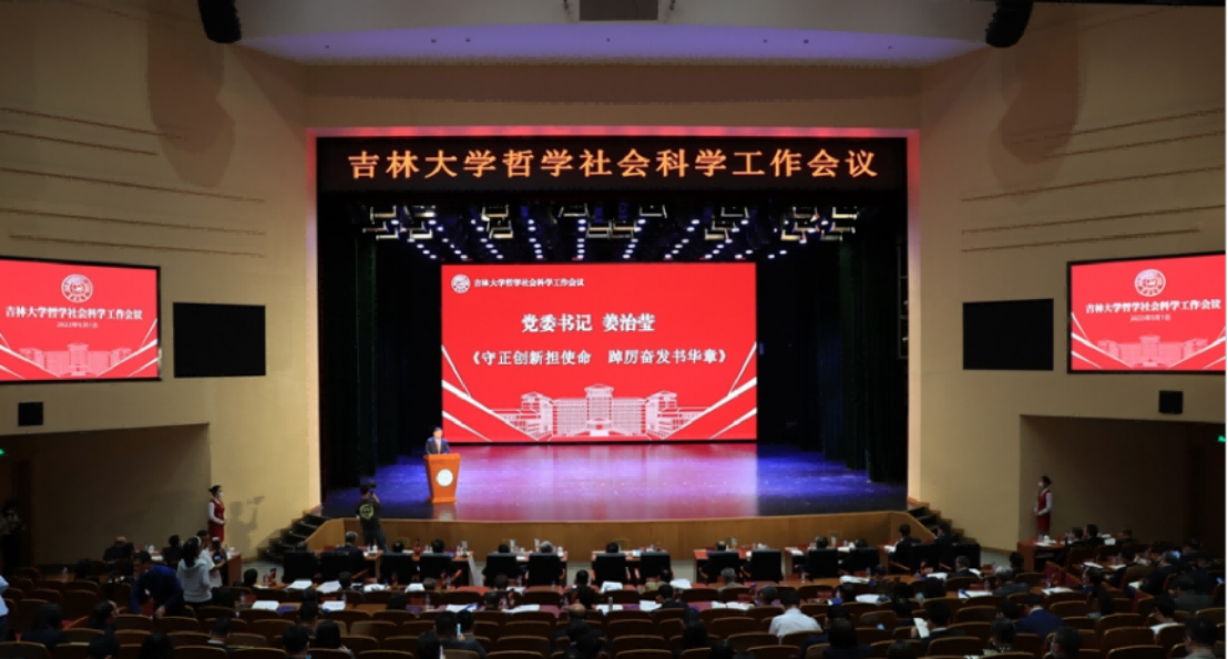 2022年9月1日,为了促进全校哲学社会科学工作者坚持以习近平新时代中国特色社会主义思想为指导,深入学习贯彻习近平总书记关于哲学社会科学的重要论述,提出更多具有主体性、原创性、时代性的理论观点,365英国上市集团哲学社会科学工作会议在鼎新大讲堂召开。吉林省委宣传部副部长刘立新出席会议并致辞。教育部社会科学司副司长谭方正以视频方式致辞。会议由党委常务副书记冯正玉主持。公司党委书记姜治莹出席会议并讲话。365英国上市集团党委常委、副董事长蔡立东解读《365英国上市集团哲学社会科学高质量发展行动计划》并宣读《关于365英国上市集团“十三五”哲学社会科学的表彰决定》。