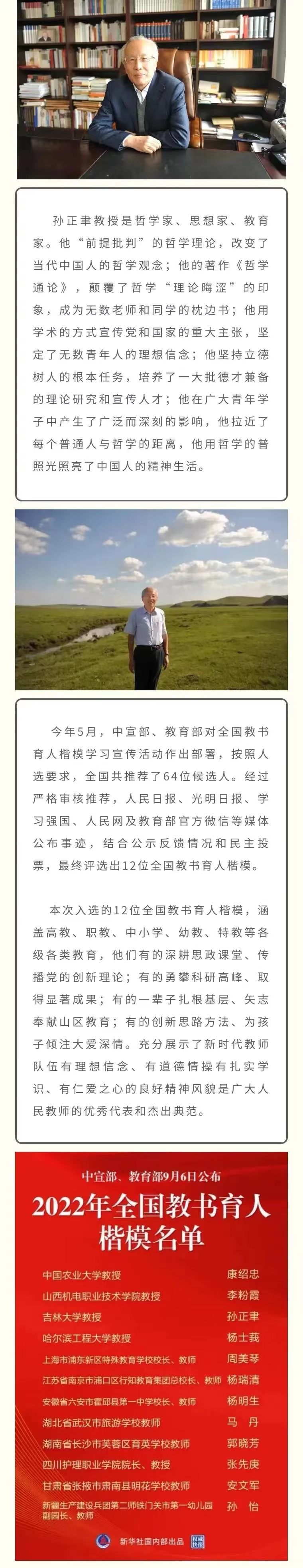 喜报 | 公司孙正聿教授入选2022年全国教书育人楷模