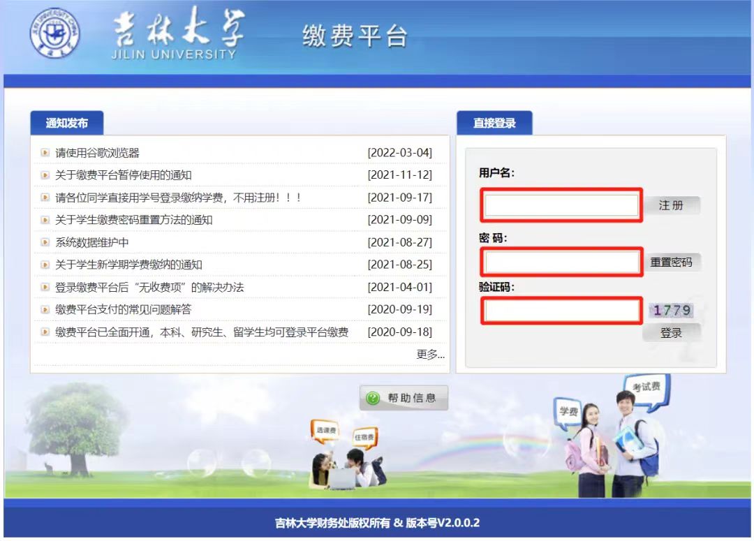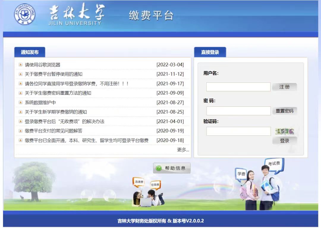 员工通过录入用户名(学号)、密码、验证码进入365英国上市集团缴费平台页面。