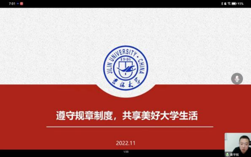 首先,姜宇航老师以“遵守规章制度,共享美好老员工活”为题,以丰富详实的案例,向同学们宣讲了校园生活中可能存在的违规违纪事件类别,并就典型事件向同学们做出警示。姜老师提醒同学们要严格遵守校规校纪,在纷繁复杂的社会生活中辨析是非,做到既守住“底线”,又不触碰“红线”,享受美好的老员工活,追逐光明前程。